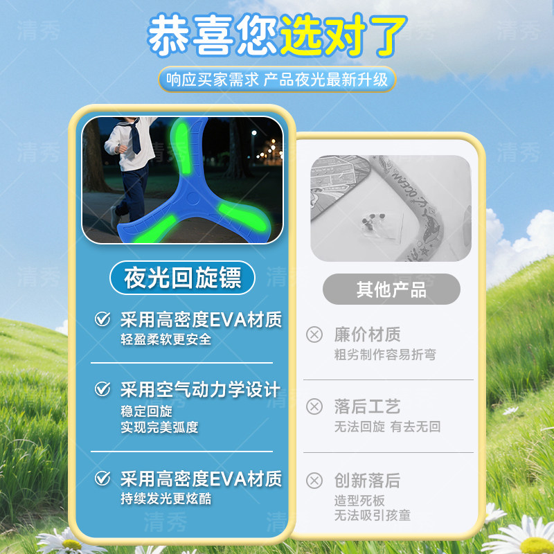 夜光回旋镖发光飞碟儿童户外玩具软回力镖飞盘广场趣味亲子互动HX