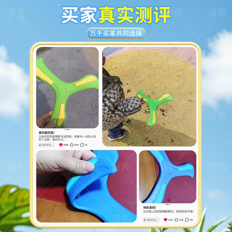 手抛儿童回旋镖大号玩具飞回来摔不烂户外亲子互动玩具三叶回力标
