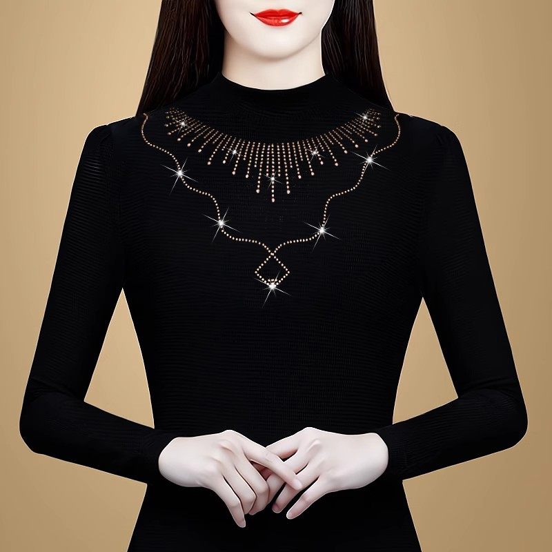上衣女秋冬装半高领德绒洋气加厚中年妈妈打底衫内搭加绒红色黑色