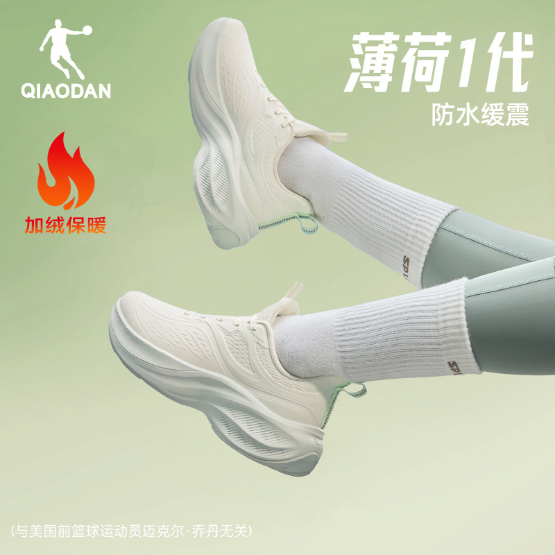 乔丹加绒运动鞋跑步鞋女2025冬季新款皮面防水棉鞋轻便减震慢跑鞋