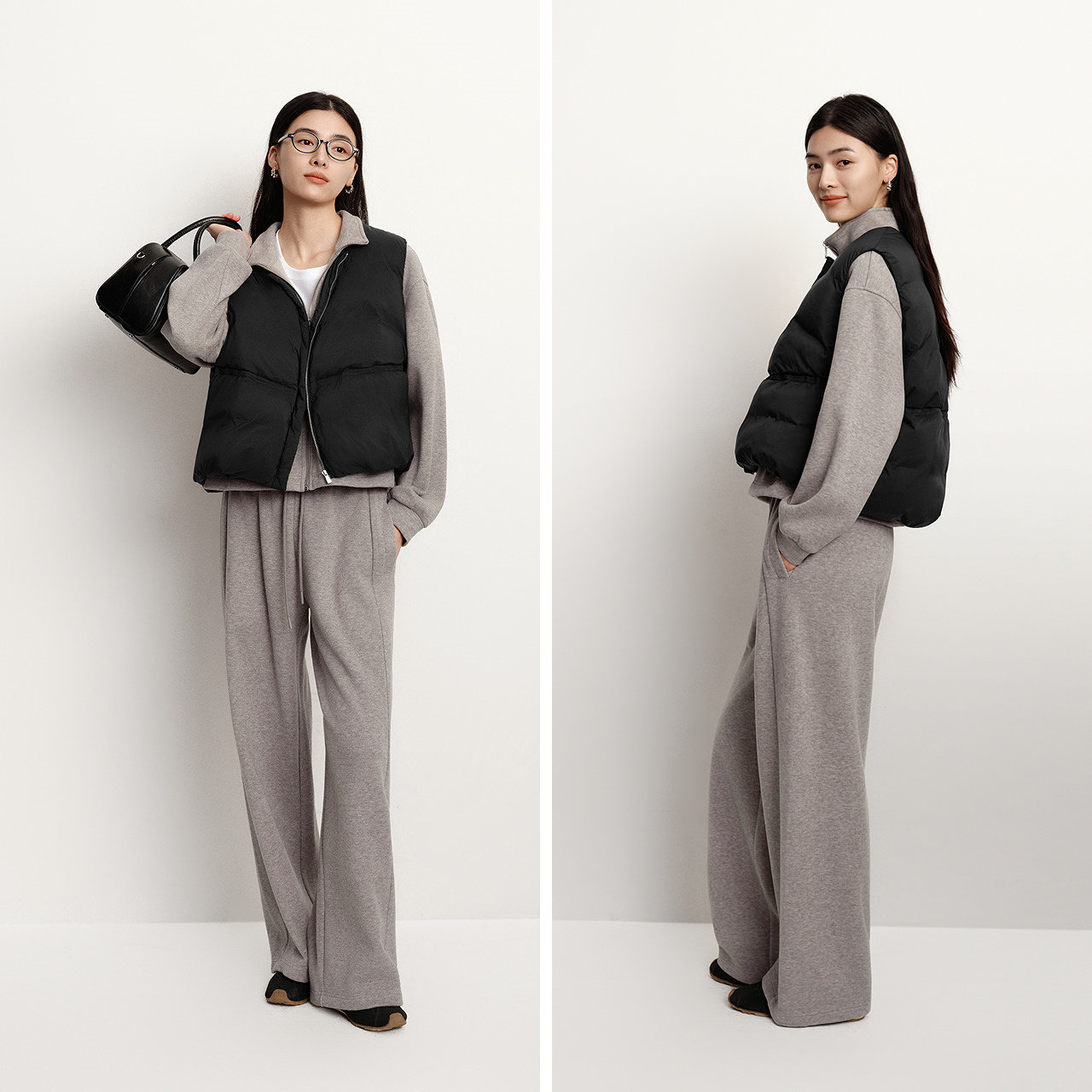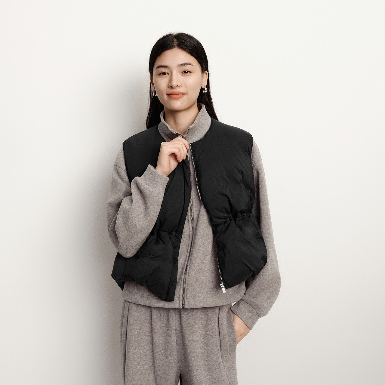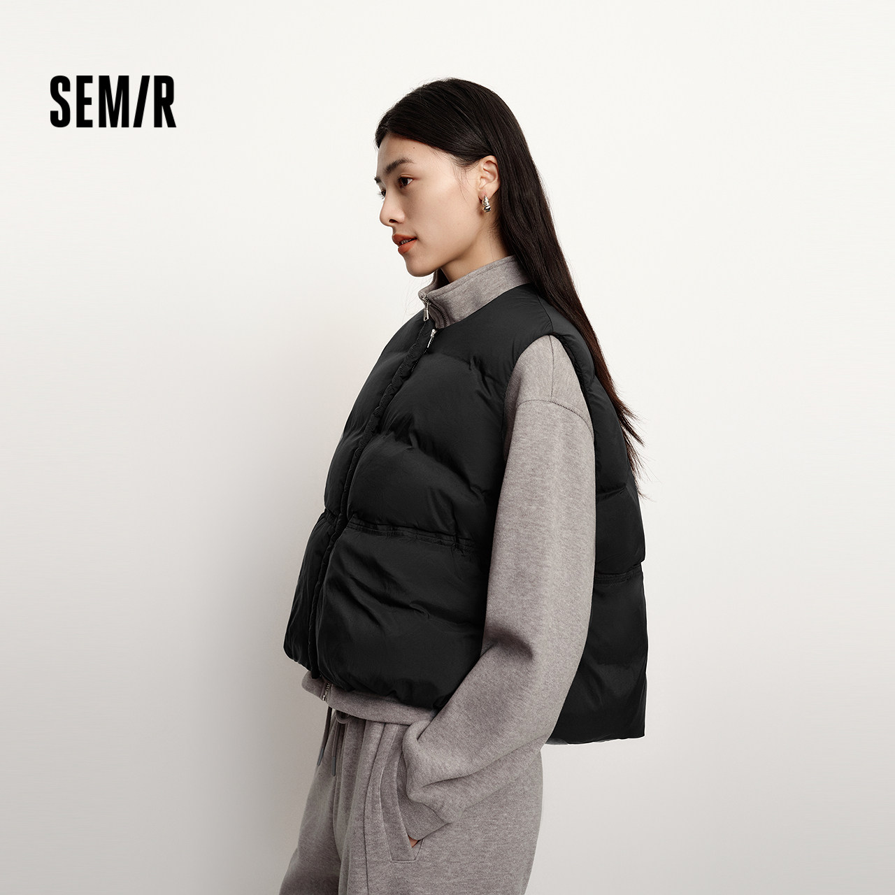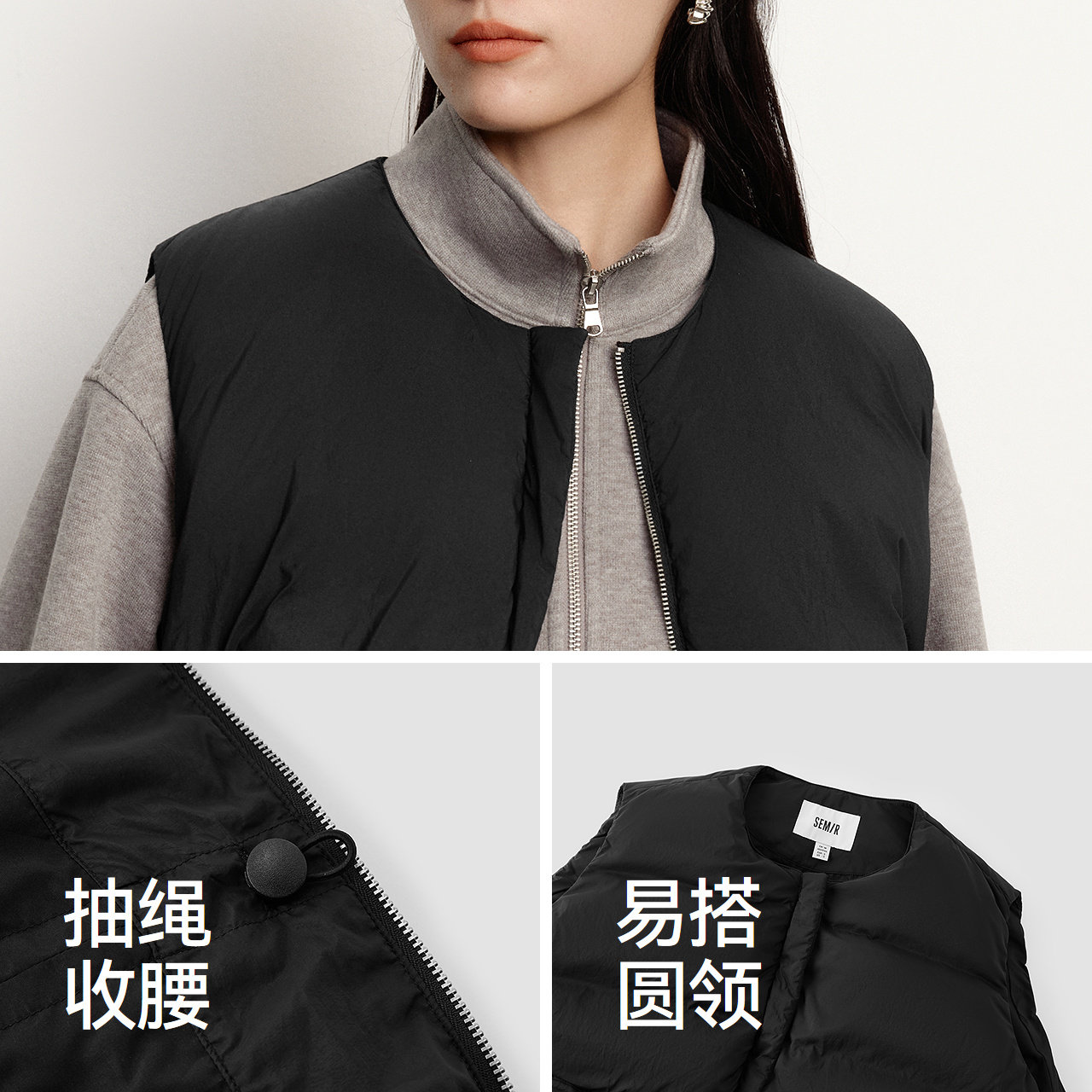 【蜜蜂欢乐社】森马羽绒马甲女冬纯色收腰圆领叠穿2025冬装新款
