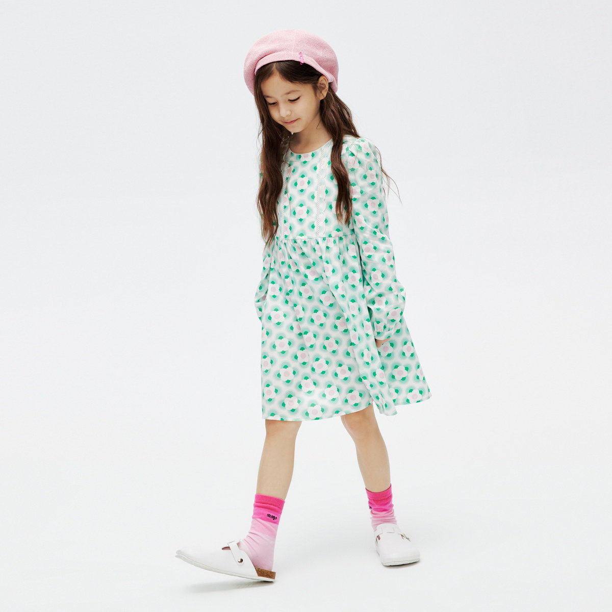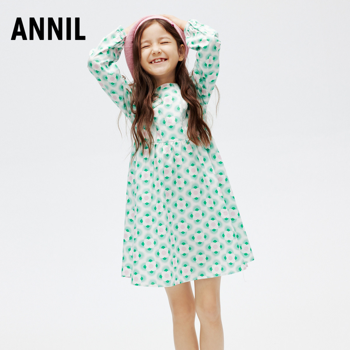 安奈儿童装女童连衣裙秋装清新印花纯棉甜美弹力时尚裙子