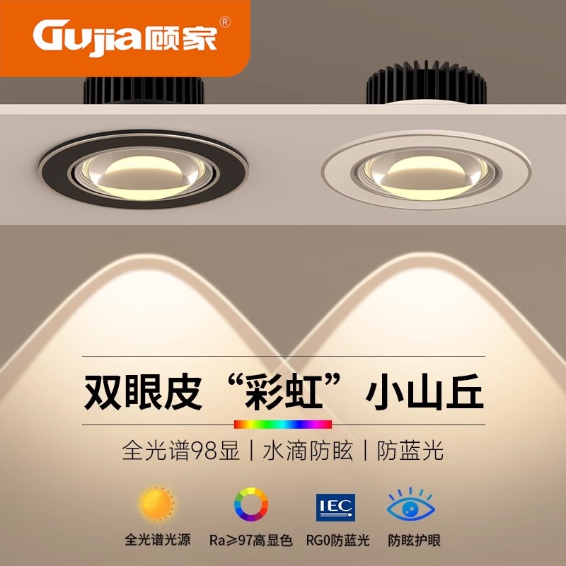 嵌入式射灯彩虹小山丘深杯防眩洗墙灯双眼皮光弧全光谱双层新款灯