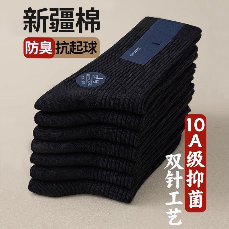 袜子男士中筒袜防臭吸汗透气运动袜秋冬诸暨黑色男款长袜新疆棉