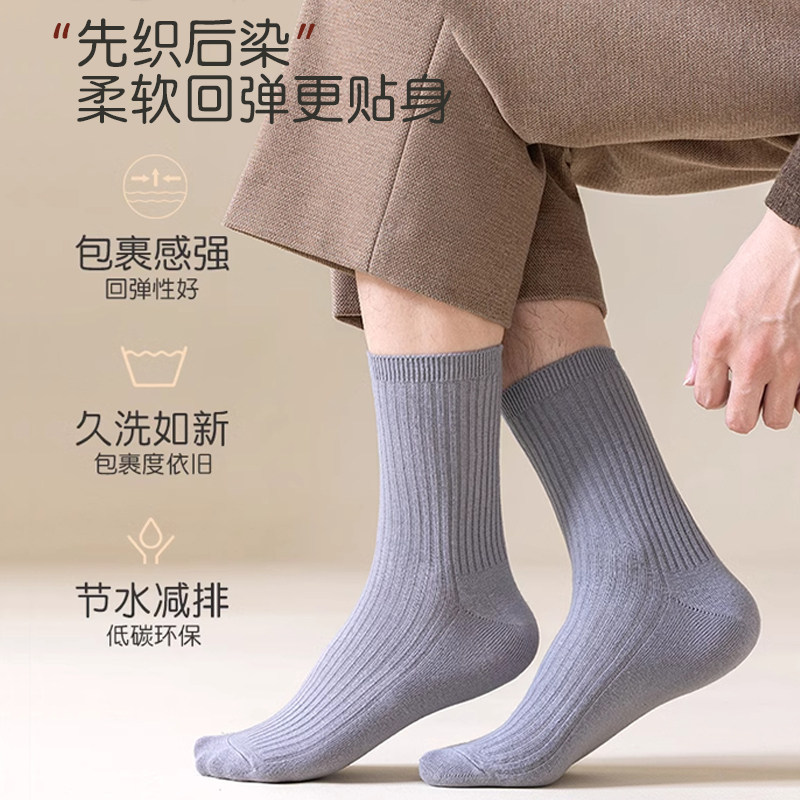 芬腾可安男士通勤商务中筒袜秋冬季男款防臭吸汗商务纯色袜子潮