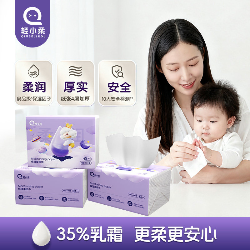轻小柔600张3包婴儿超柔纸巾云柔巾乳霜纸宝宝专用保湿纸擦鼻纸