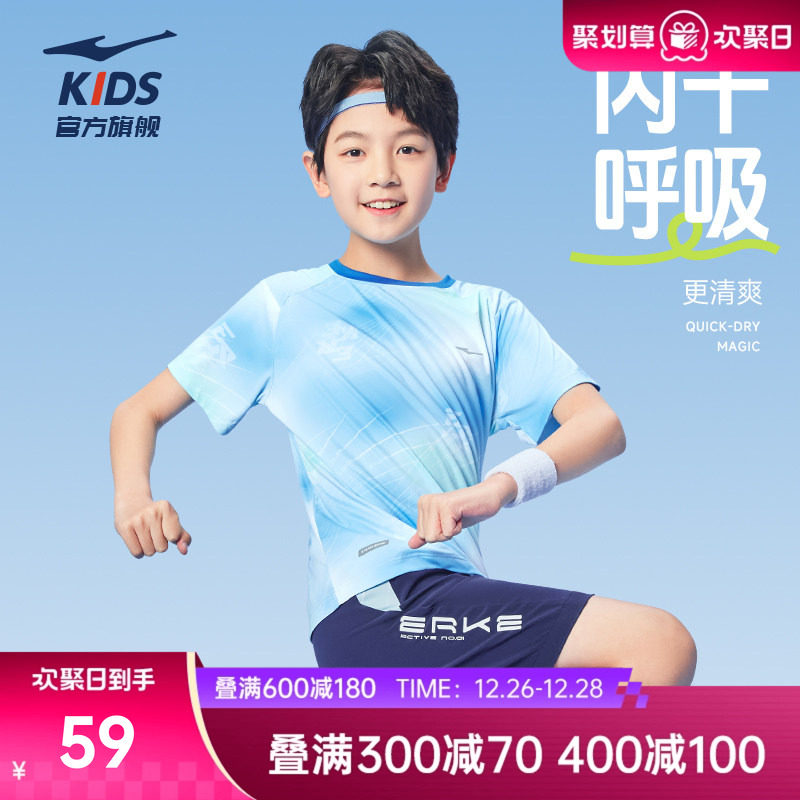 鸿星尔克童装男童短袖冬季新款速干T恤运动百搭中大童宽松半袖女