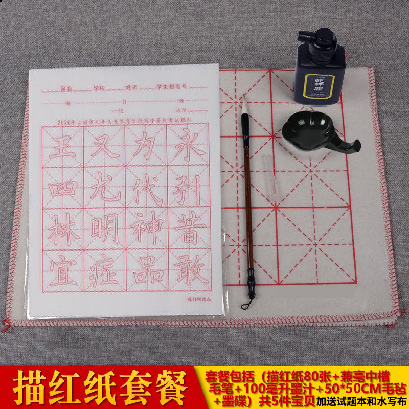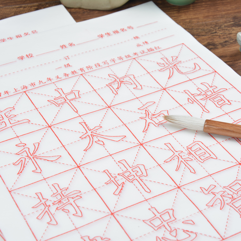 上海市九年义务教育阶段毛笔字等级考试描红宣纸16格半生半熟米字格宣纸 5cm格子小学生初学毛笔书法练习纸