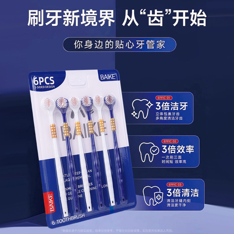 怡宝三面牙刷成人软毛包裹式立体无死角头舌苔清洁护齿家庭装男女