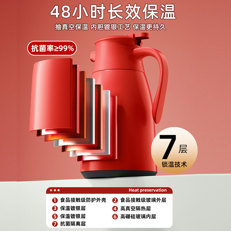 2025新款保温壶家用大容量热水壶宿舍热水瓶ghyx长效红色办公室