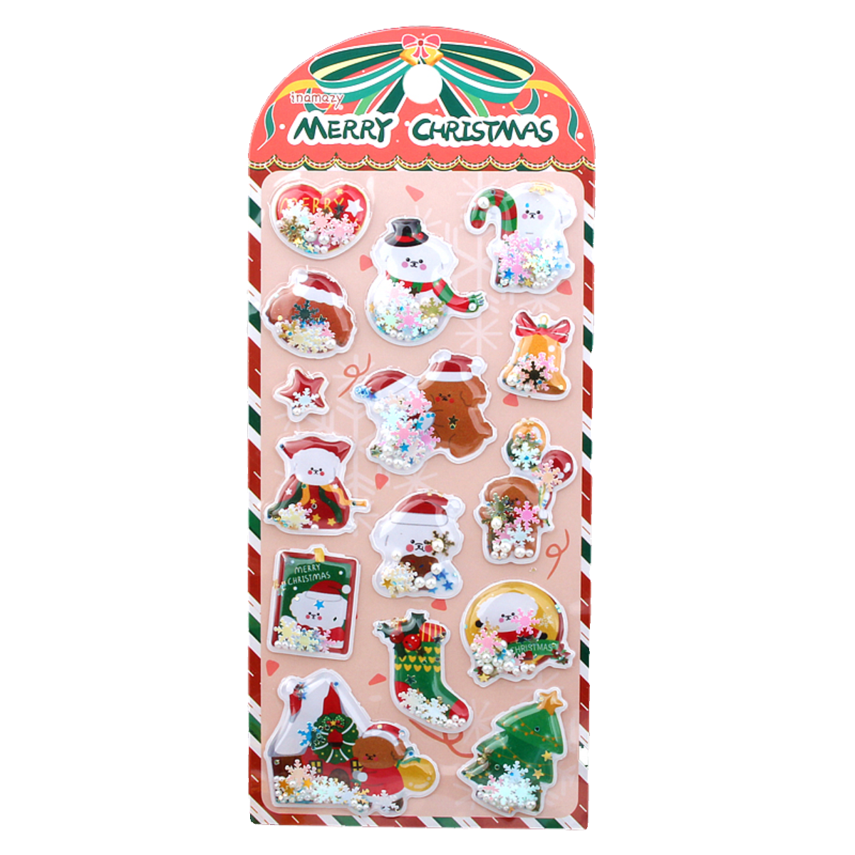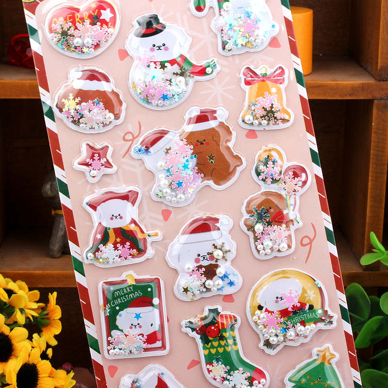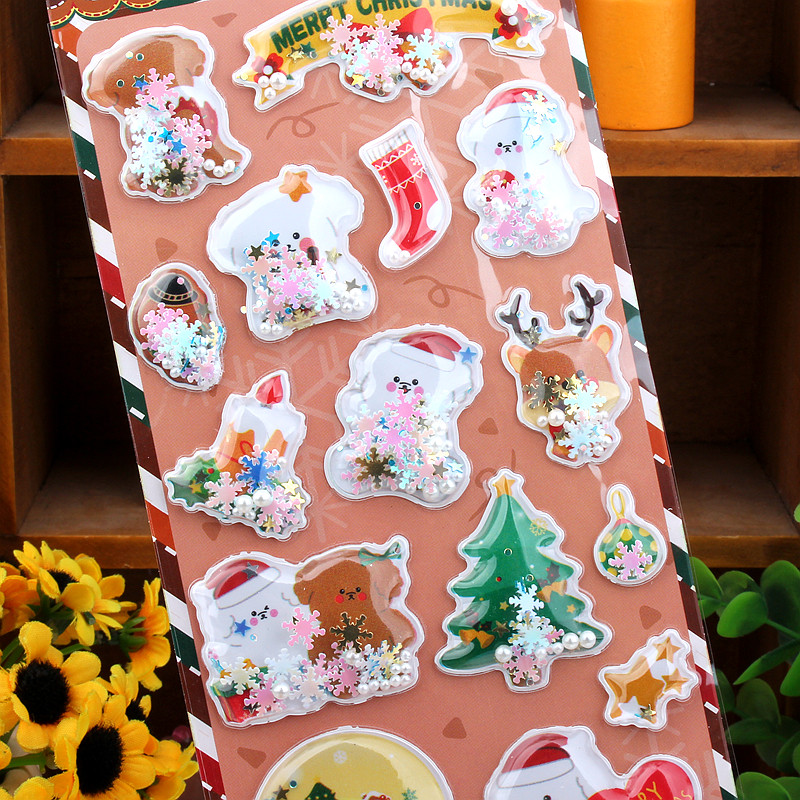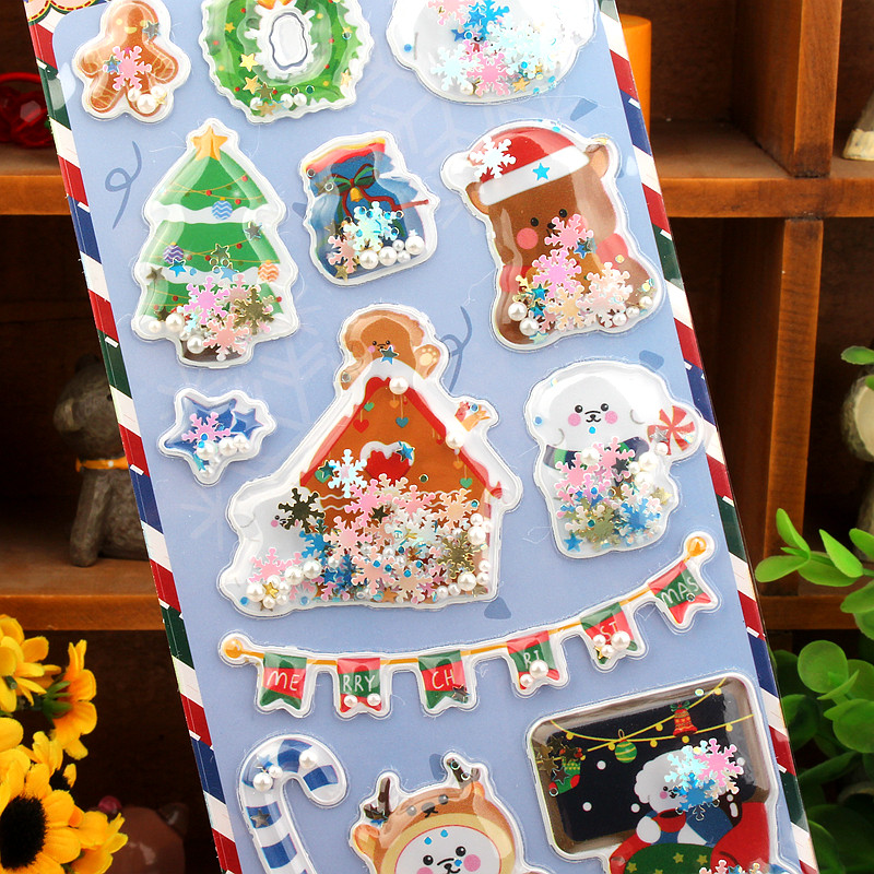 圣诞节立体闪亮摇摇贴画3D卡通装饰sticker幼儿园儿童奖励小贴纸