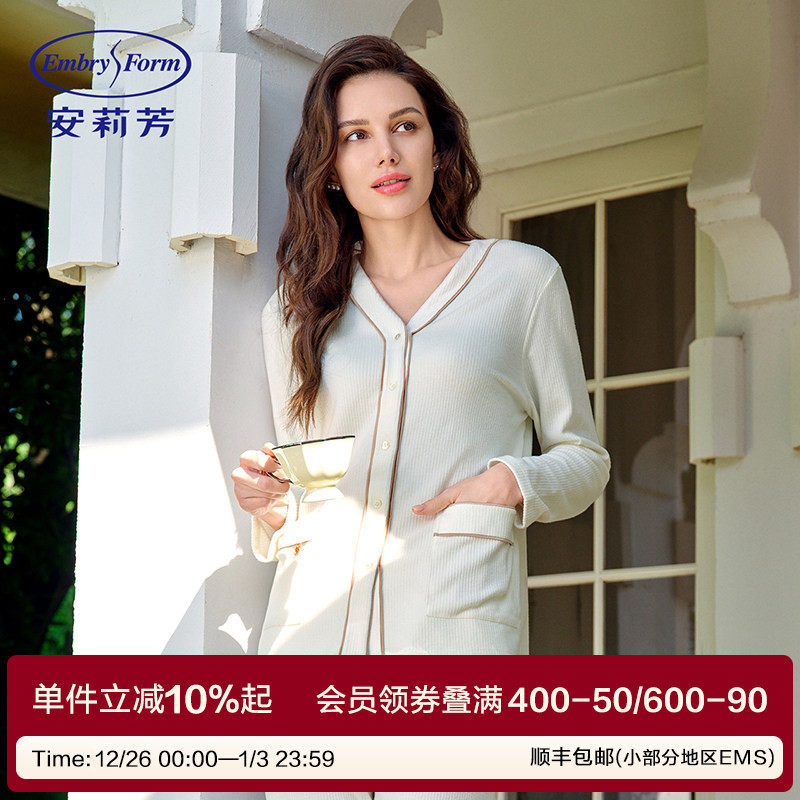 安莉芳2024年秋冬v领长袖加厚睡衣睡裤女士舒适家居服套装EL00786