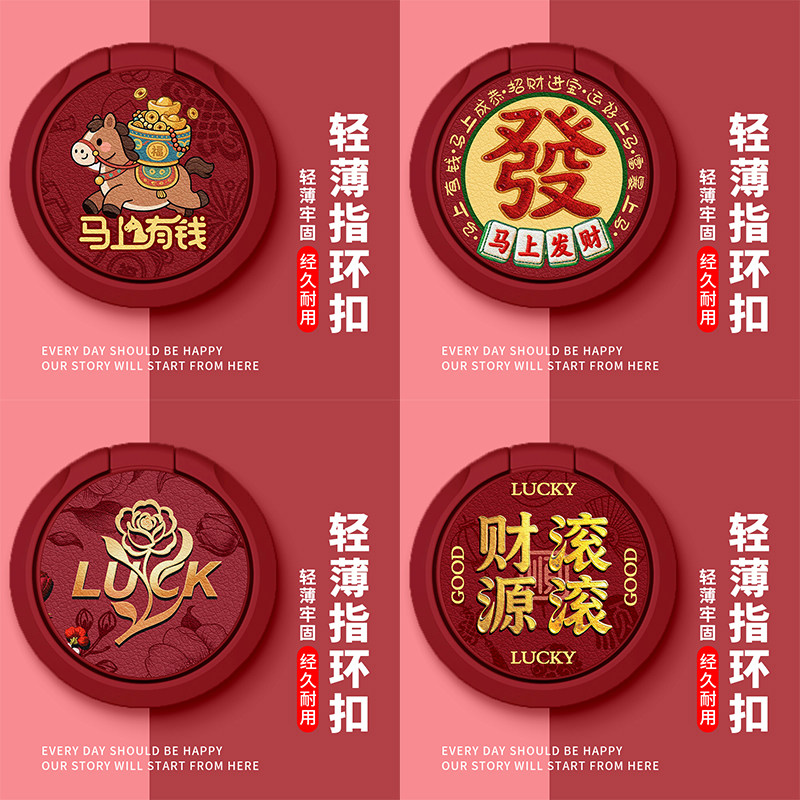 佳朗平安喜乐马年手机支架适用苹果安卓华为小米旋转支架指环扣自粘黏贴男女生通用保护套卡通情侣360°自拍
