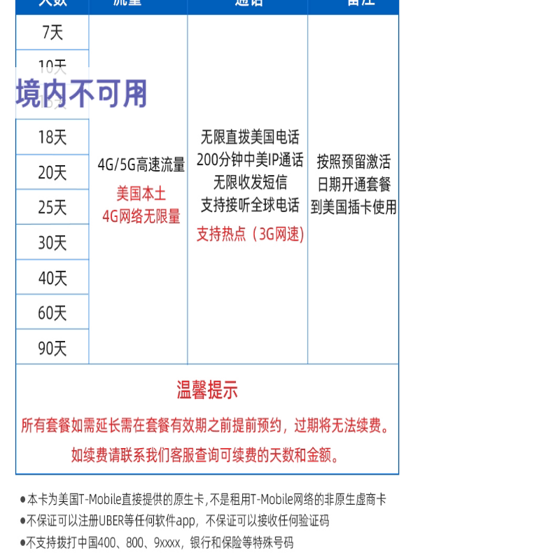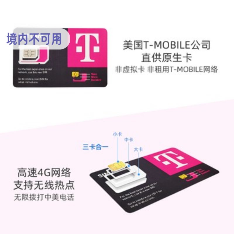 美国电话卡无限流量5G上网卡夏威夷旅游SIM卡T-Mobile原生手机卡