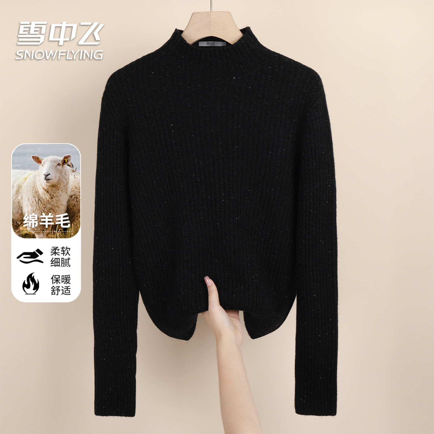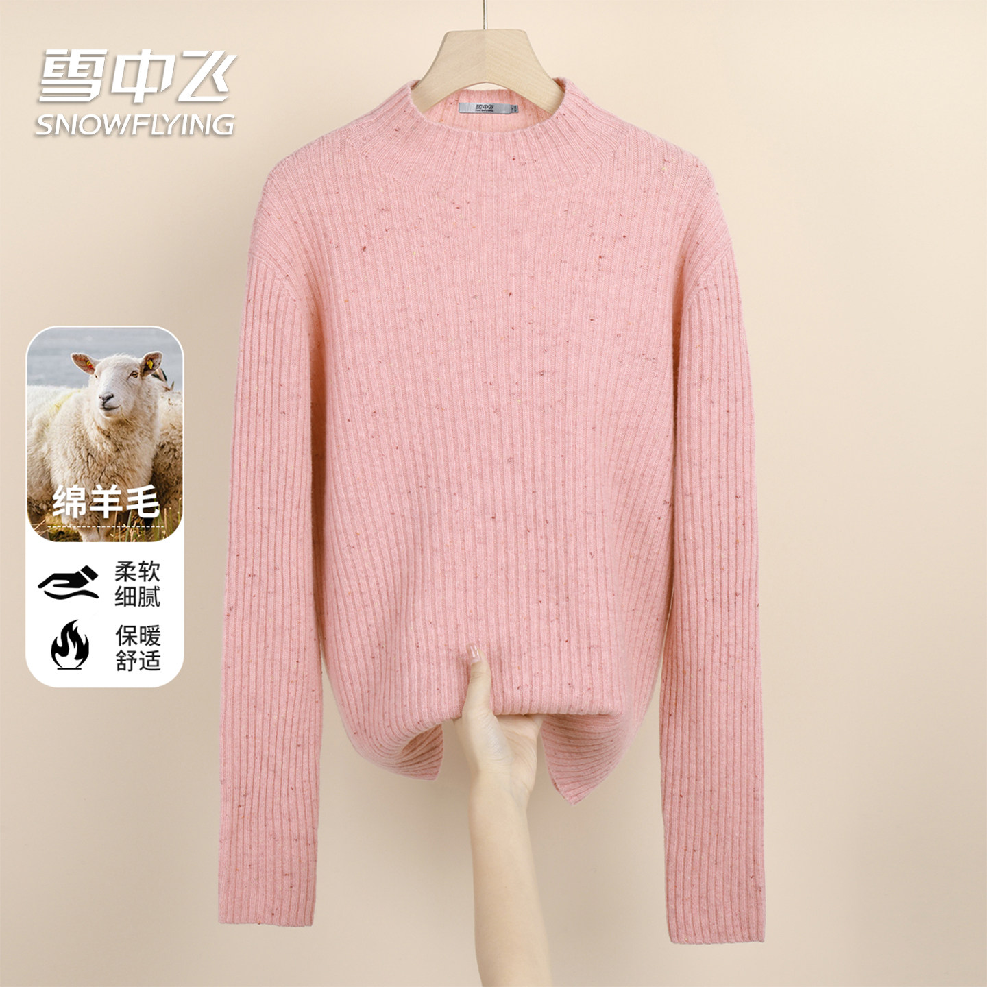 雪中飞【含绵羊毛】女士秋冬半高领内搭纯色百搭套头羊毛衫女装W