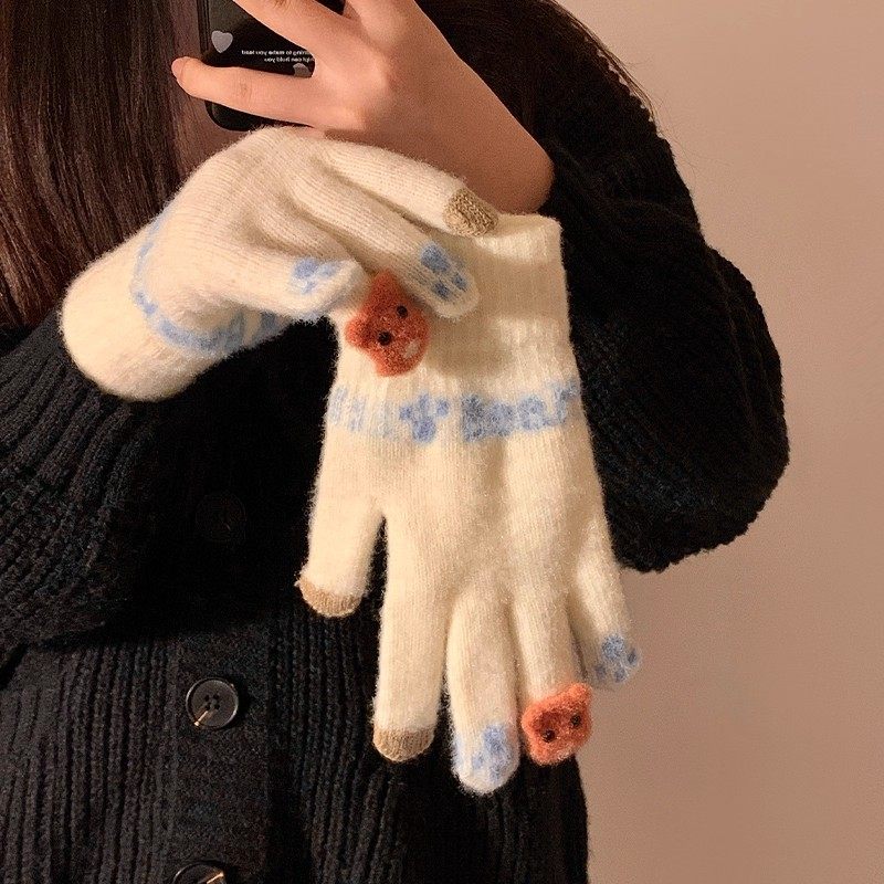 毛线手套女冬季加绒加厚保暖针织可触屏学生冬天防寒防水新款骑行