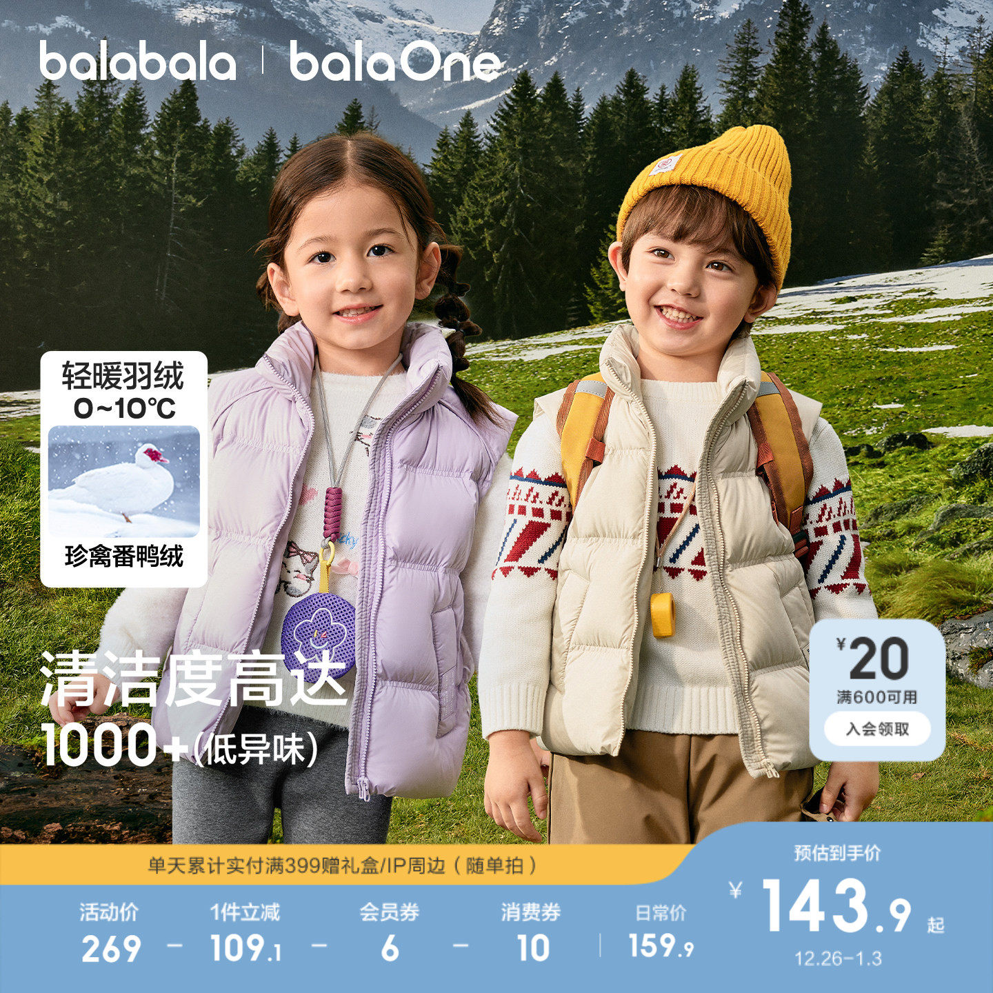 巴拉巴拉儿童羽绒马甲女童男童亲子外套上衣新款童装2025秋冬保暖