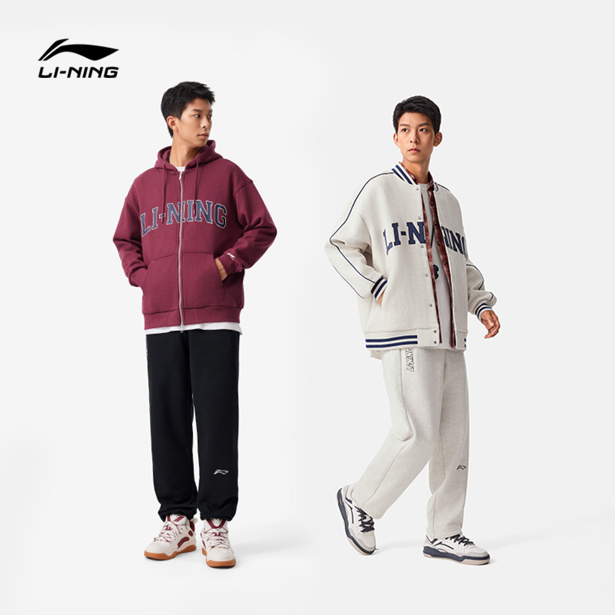 李宁卫裤男士冬季宽松黑色裤子直筒休闲裤加绒跑步裤针织运动裤男