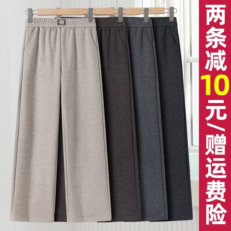 妈妈裤子春秋款松紧高腰弹力中老年女裤宽松大码直筒奶奶加绒长裤