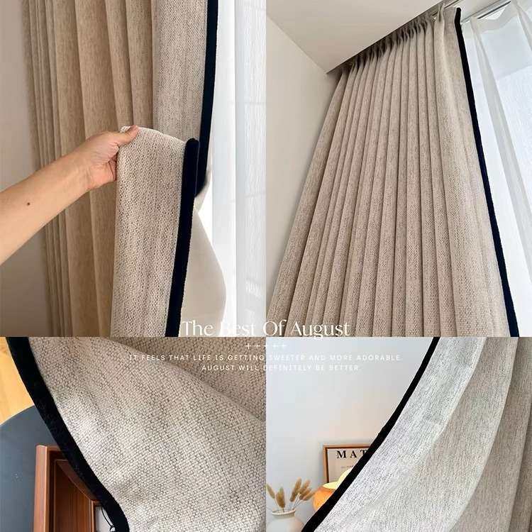腔调感黑边法式奶油中古轻法式雪尼尔亚麻棉麻感客厅卧室遮光窗帘