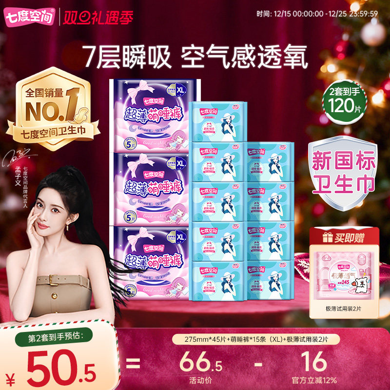 【39.9元任选10包】七度空间日夜用卫生巾正品官方旗舰店