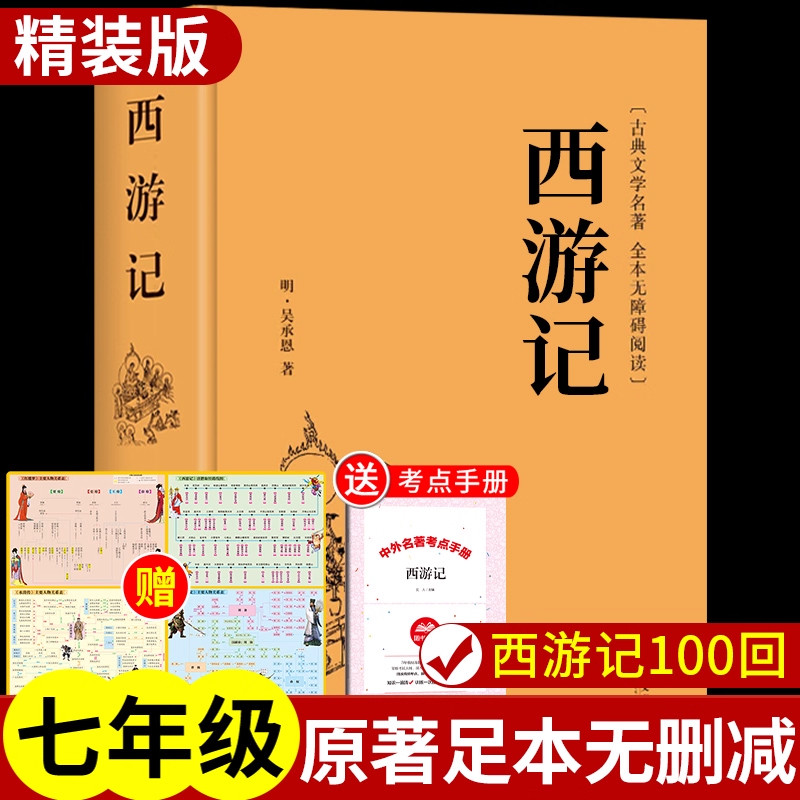西游记原著正版完整版100回七年级上册必读名著初一7上语文书目初中课外阅读书籍初中生版文言文白话文一百回水浒传经典高中文学