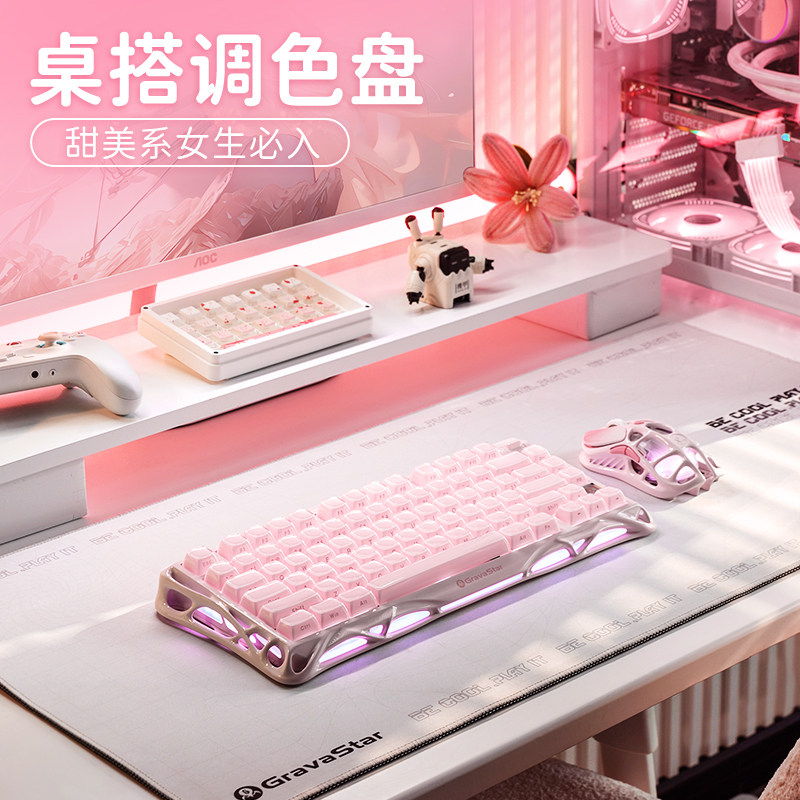重力星球破茧75机械键盘K1无线三模蓝牙游戏电竞专用粉色送女生