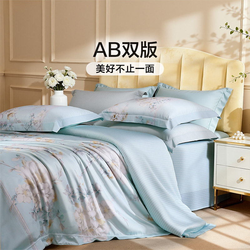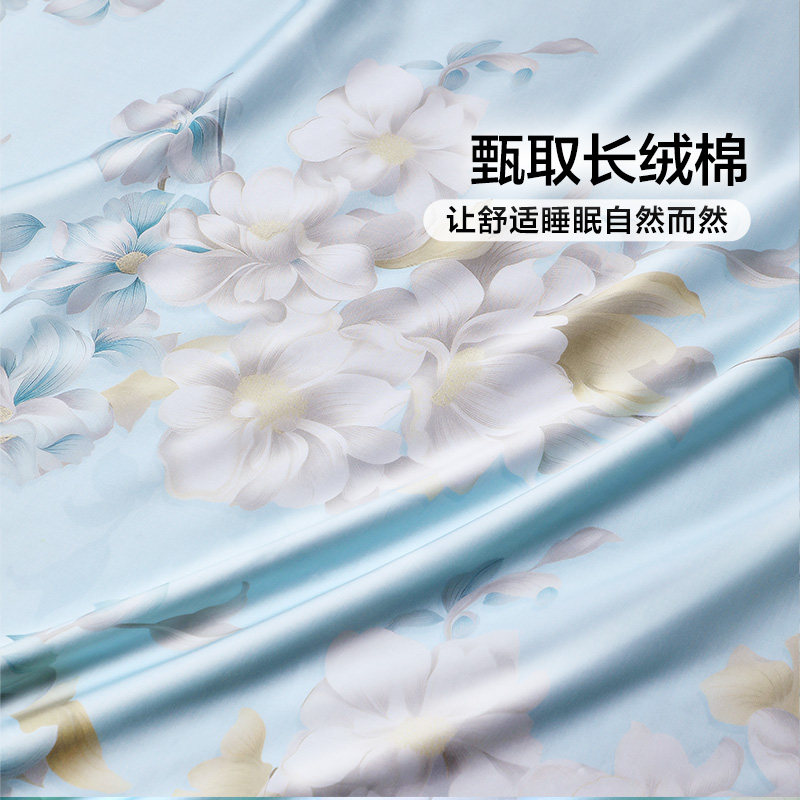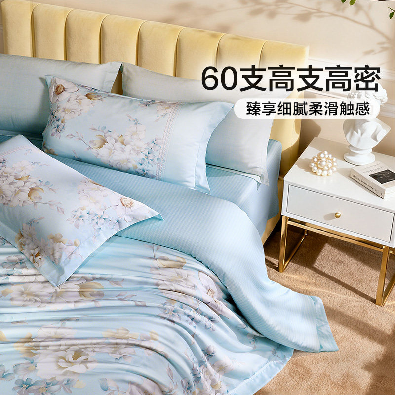 富安娜四件套60支长绒棉轻奢套件全棉印花被套床单法式床品