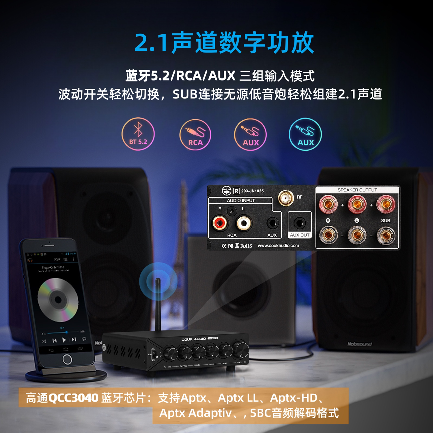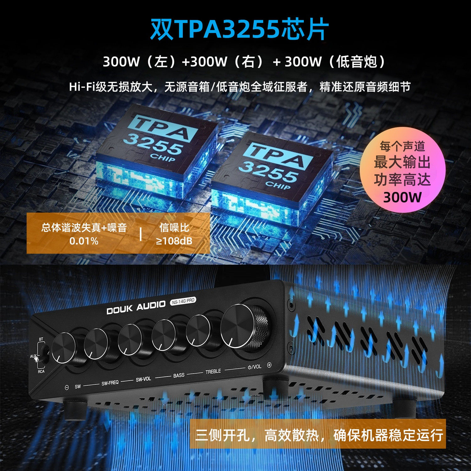 DOUK AUDIO NS-14G PRO 2.1声道功放蓝牙5.2HiFi家用发烧级大功率