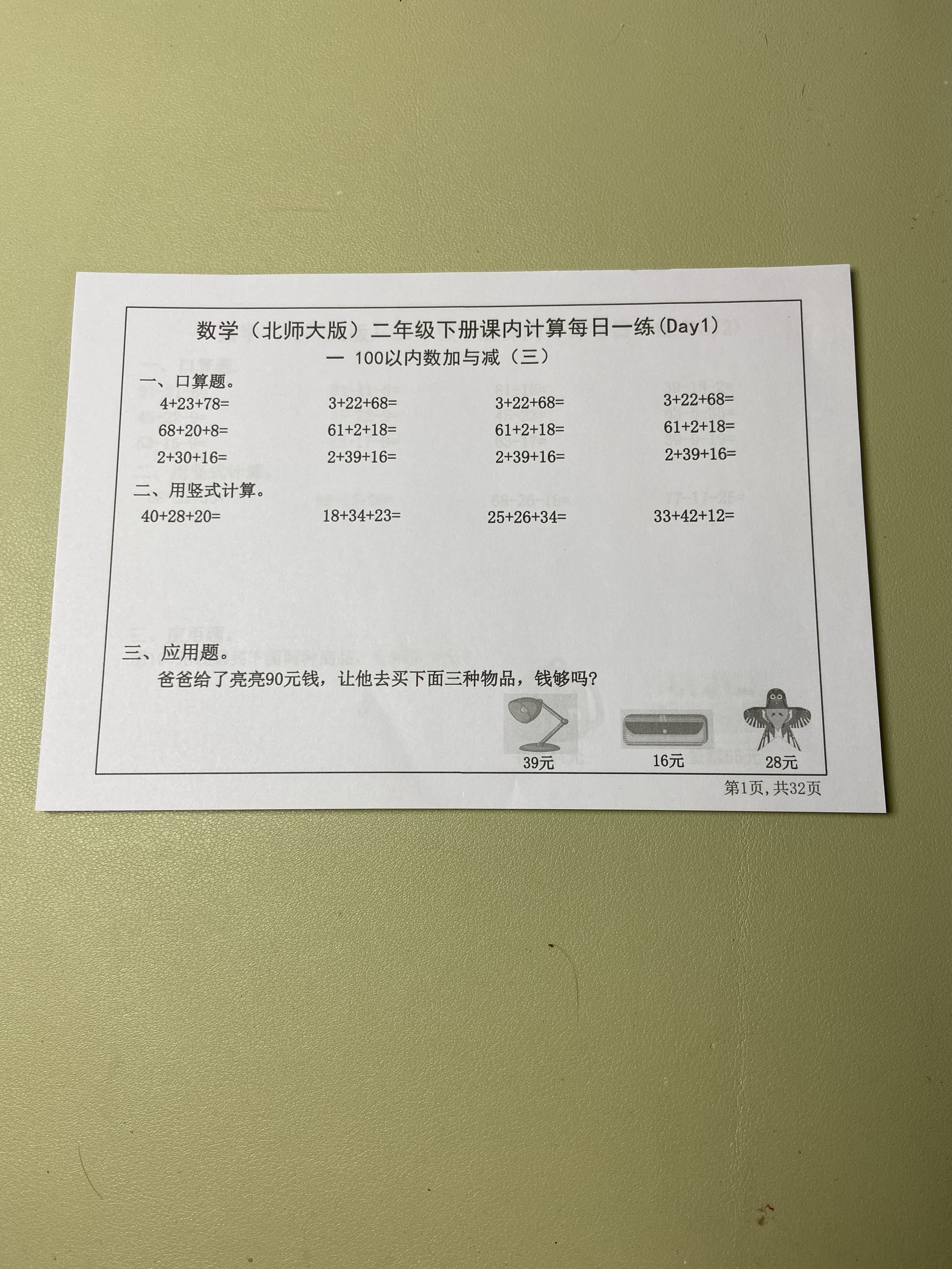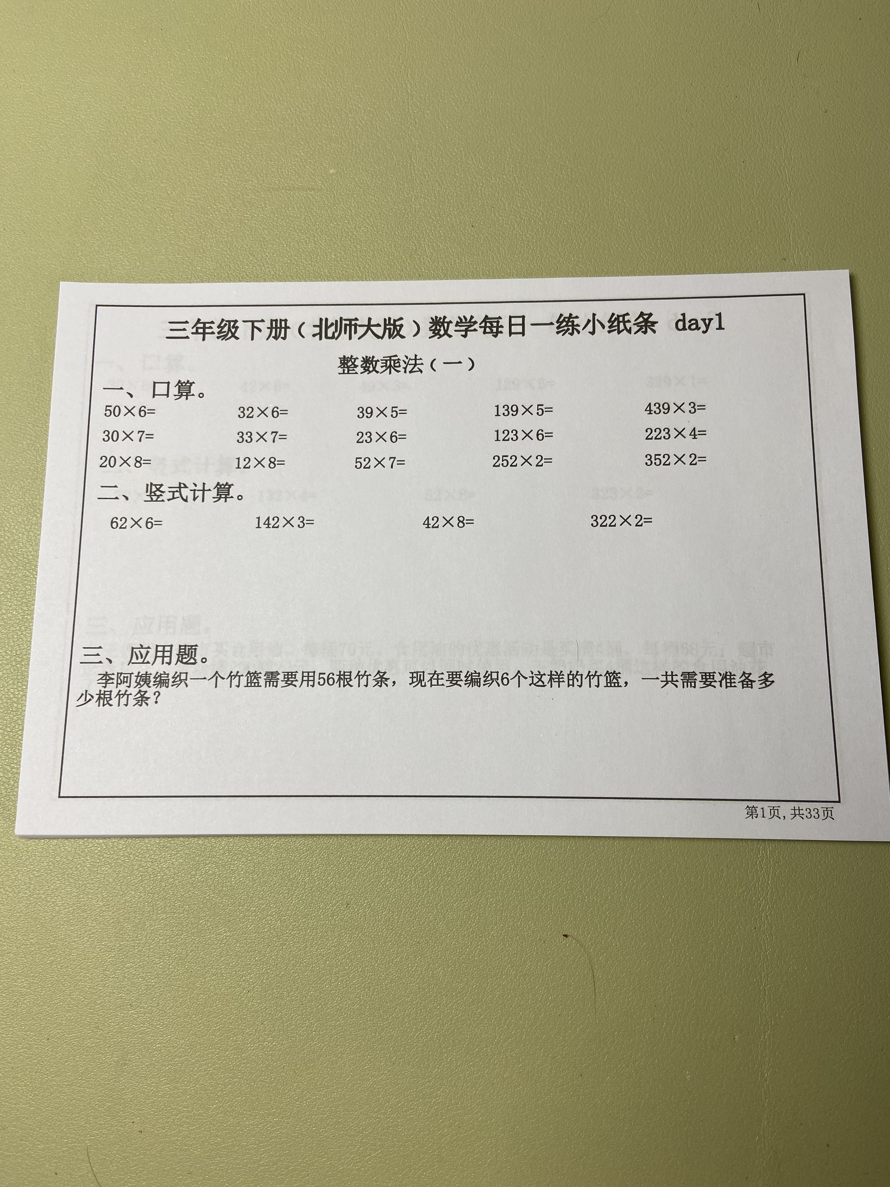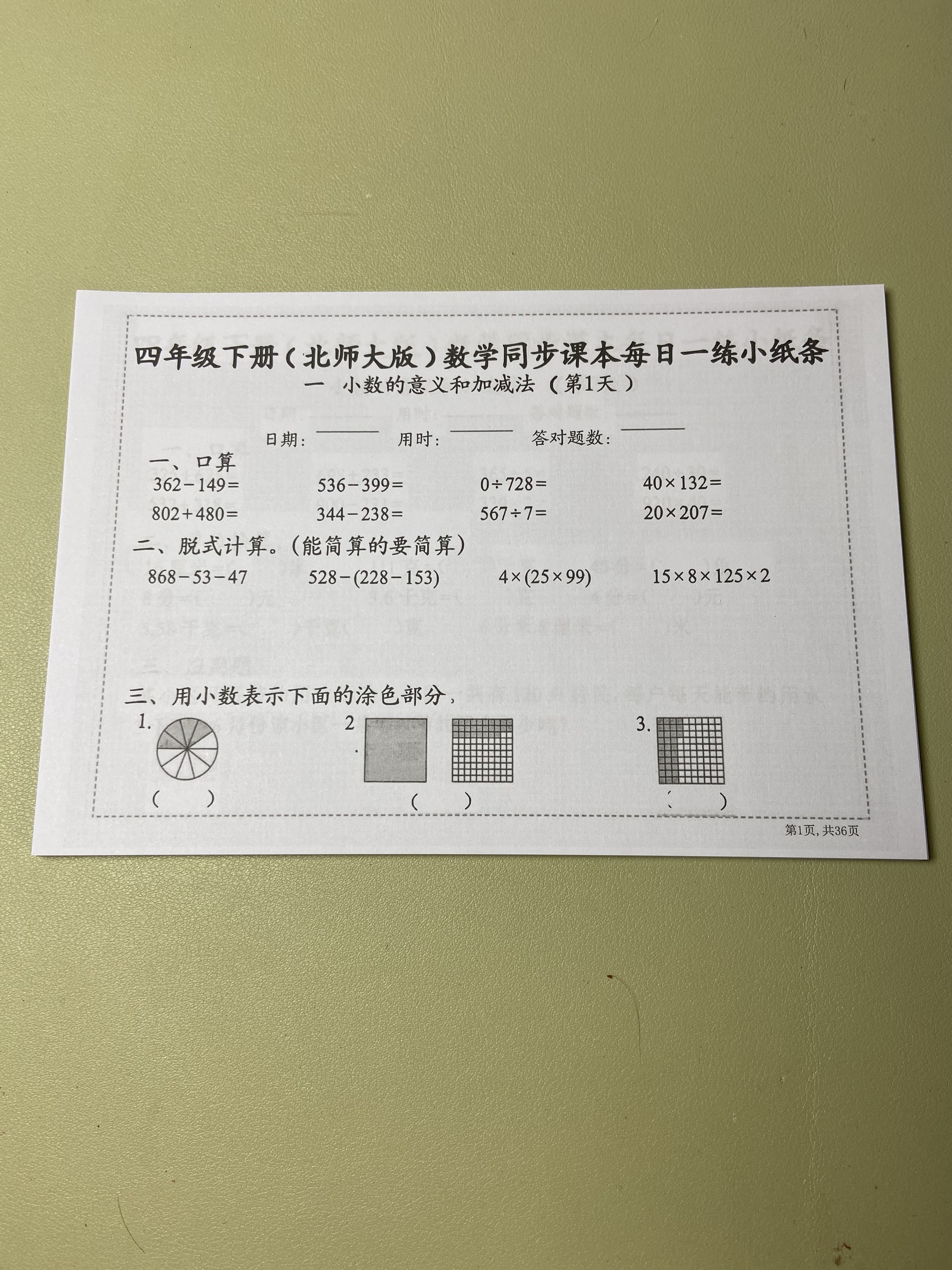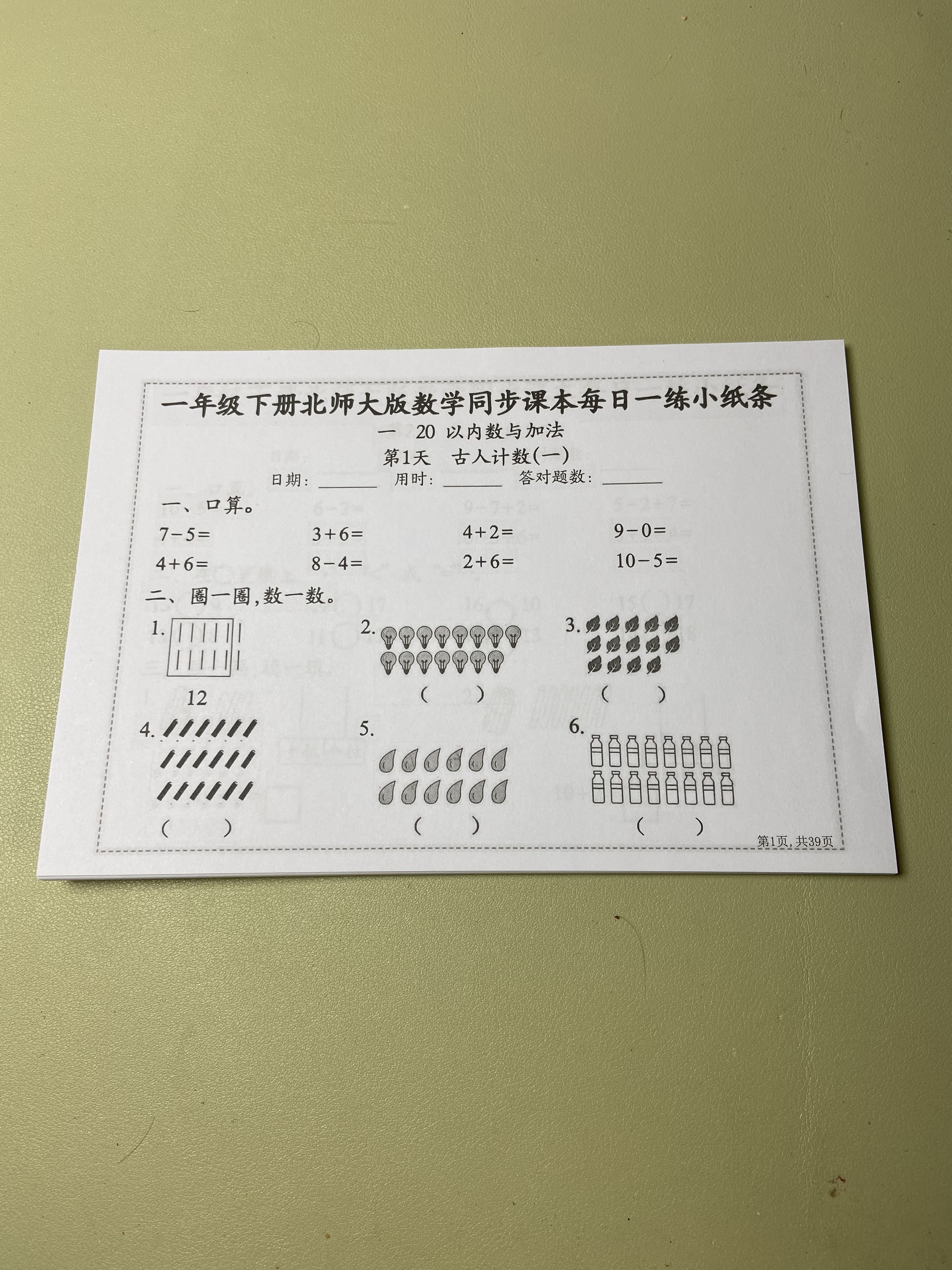 【北师大版】数学一二三四五六年级下册同步课本每日一练小纸条