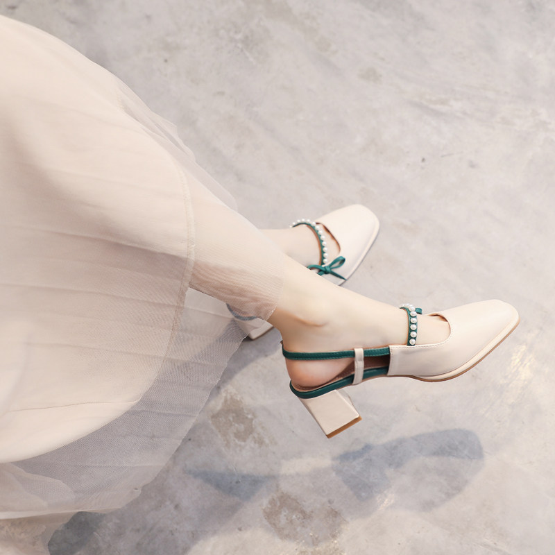 真皮包头凉鞋2026年新款女夏秋法式甜美气质高跟鞋时装软底仙女风