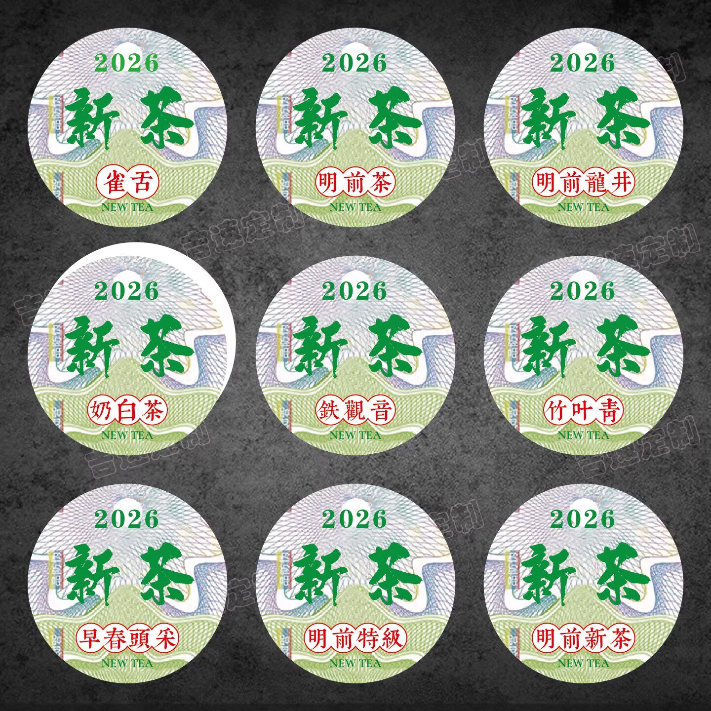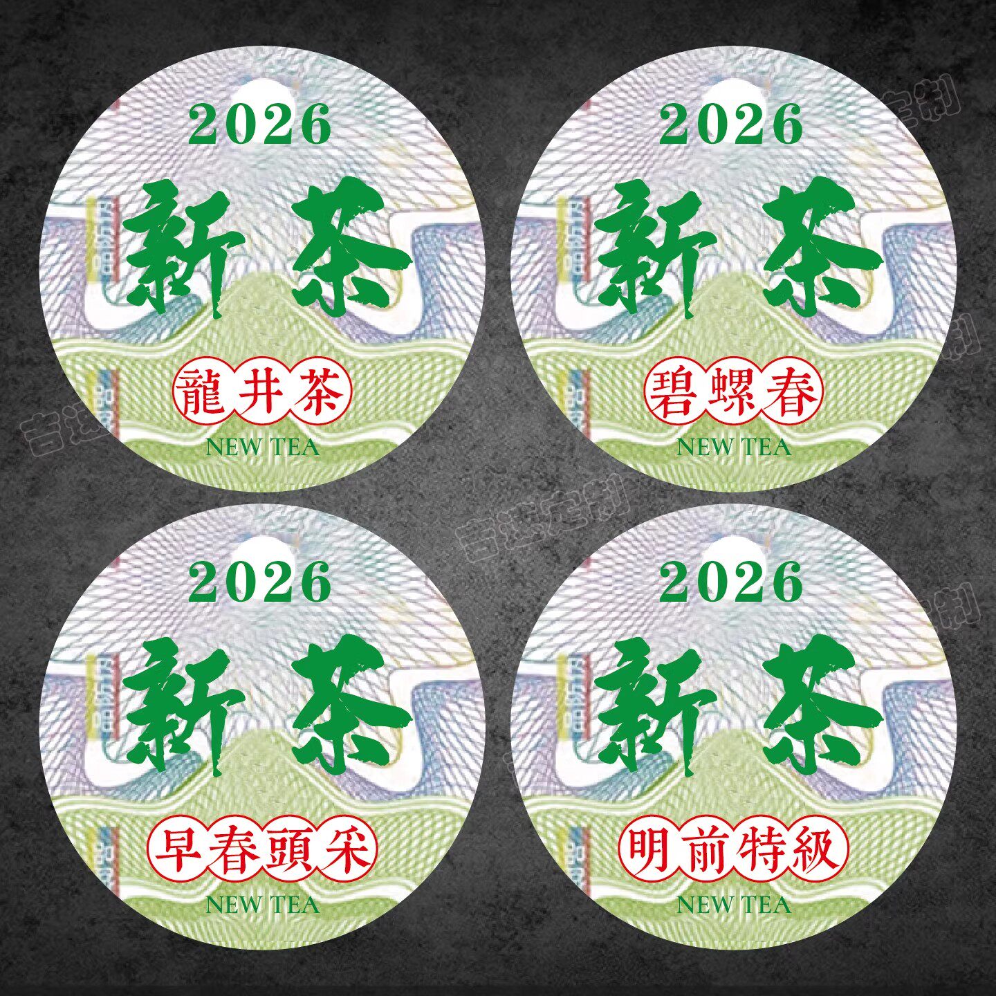 2026新茶不干胶标签圆形茶叶贴纸龙井茶碧螺春可定制茶叶罐封口贴