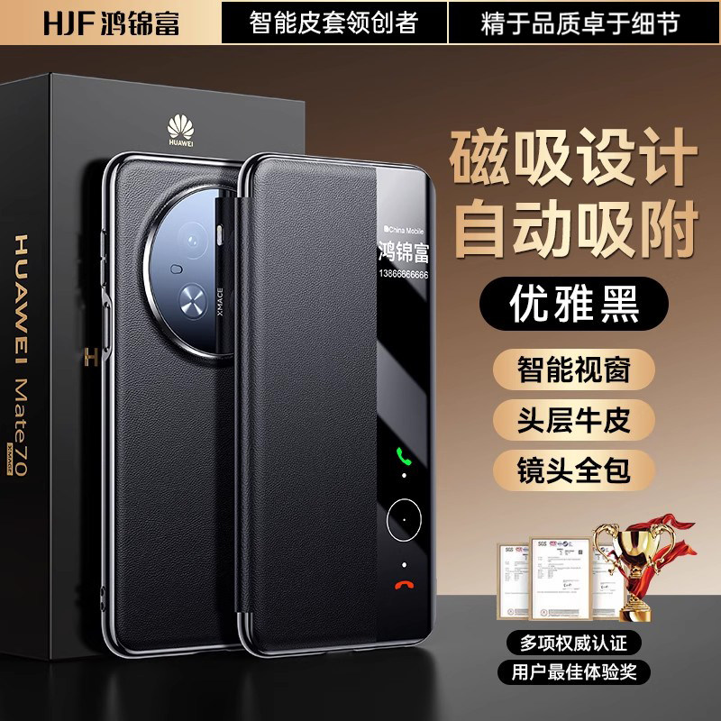 [顺丰现货]适用华为mate70pro手机壳真皮磁吸翻盖mate70pro十新款智能视窗保护套pro+镜头全包防摔M70优享版