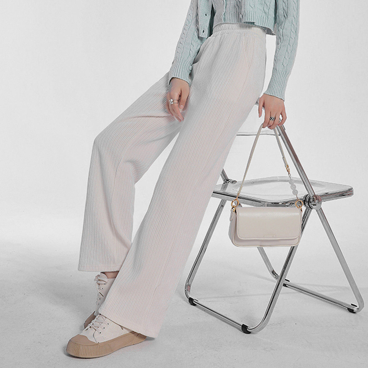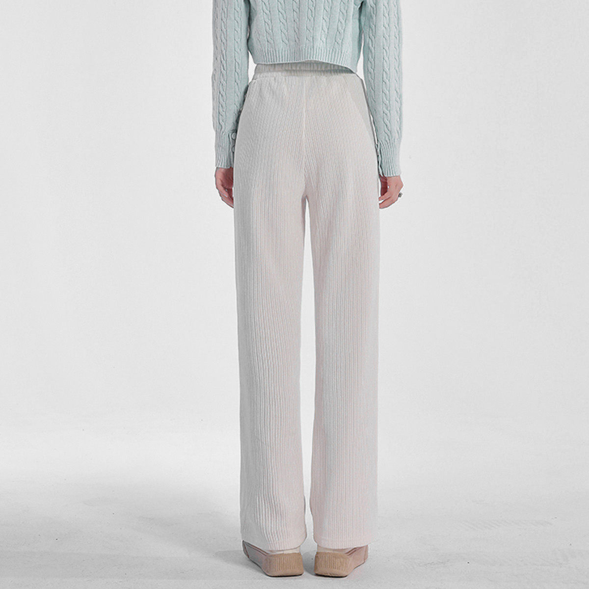 one more白色雪尼尔阔腿裤女秋季2025新款韩版简约通勤窄版直筒裤