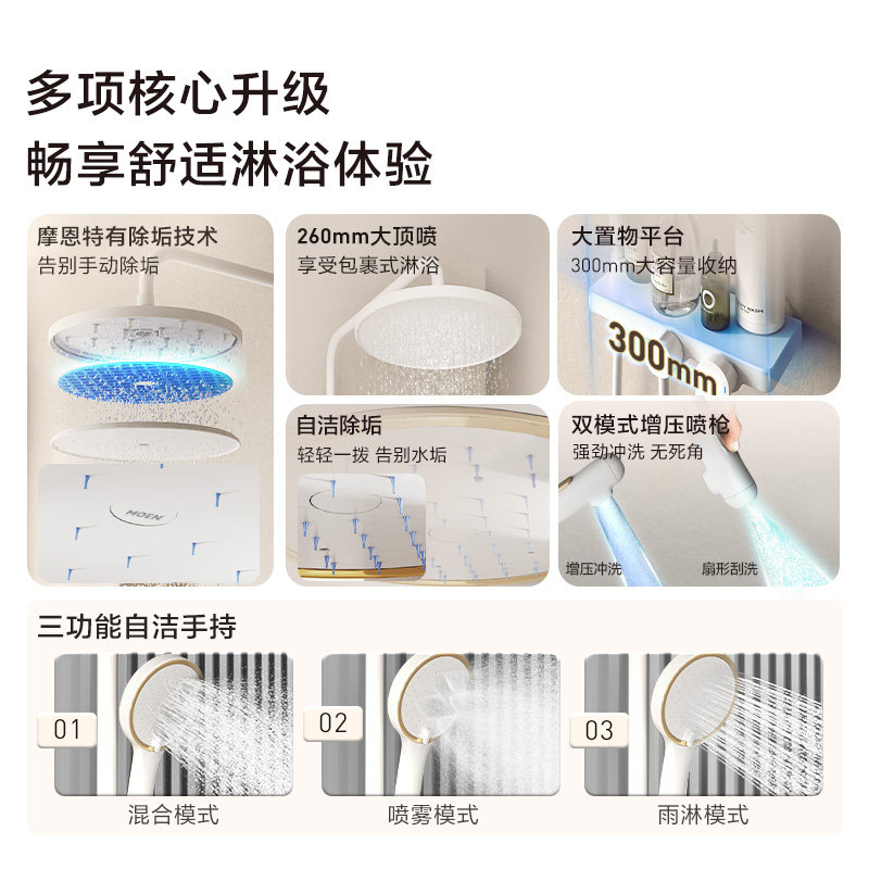 摩恩卫浴花洒套装淋浴家用全套洗浴淋浴器冷热浴室喷头沐浴卫生间