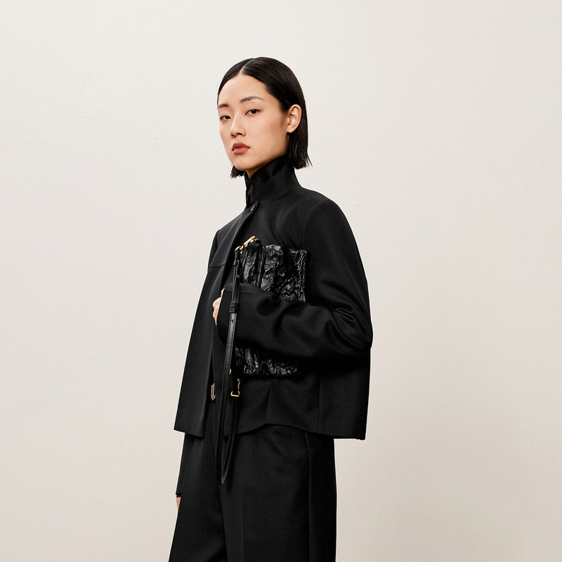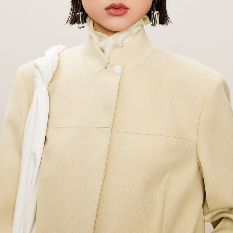 COCOBELLA高智感拼接人丝无领西装女早春通勤休闲气质外套SI533B