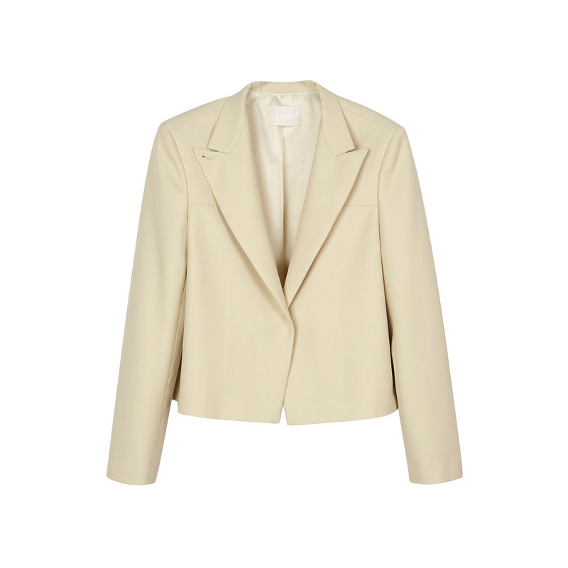 LESS春秋一粒扣干练短西服女小香风精纺戗驳领西装外套2O9710610