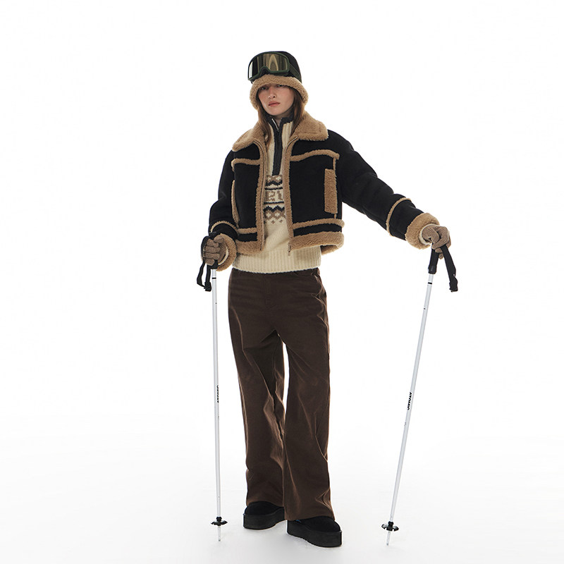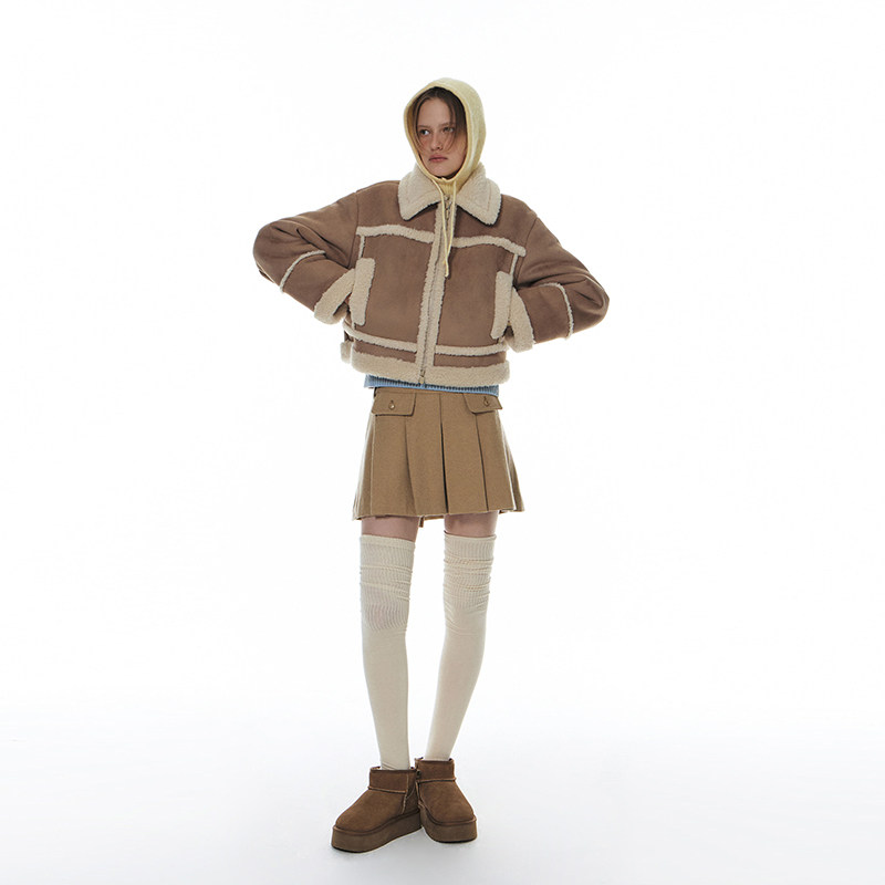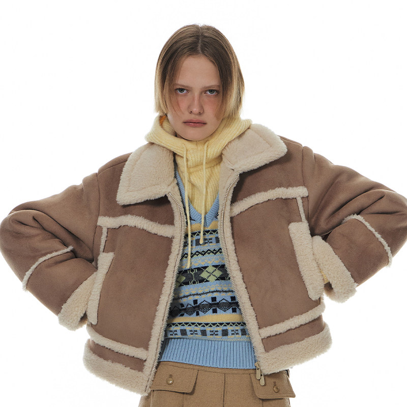 GROVE官方旗舰店冬季韩系纯色翻领仿羊羔毛短款夹克外套 GW4JP01M
