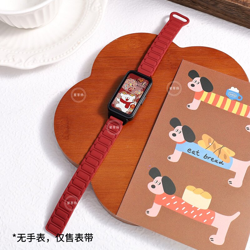 新年红适用华为手环10/9表带8/7/6硅胶磁吸编织时尚女生荣耀9手链腕带五花金属米兰荣耀7创意真皮高级感男款