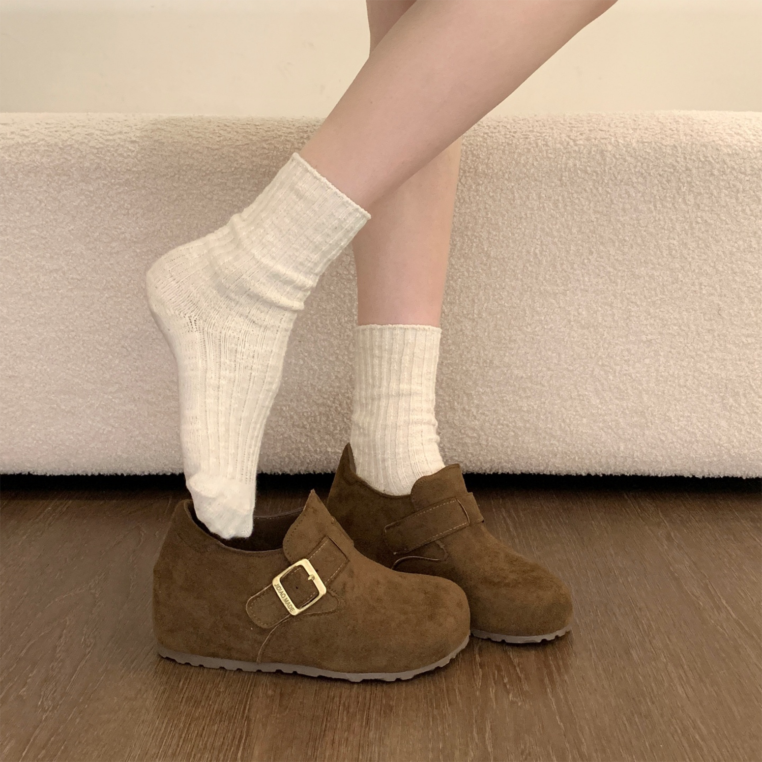 2026新款春季巨好看内增高7cm厚底勃肯鞋女鞋勃肯单鞋乐福豆豆鞋