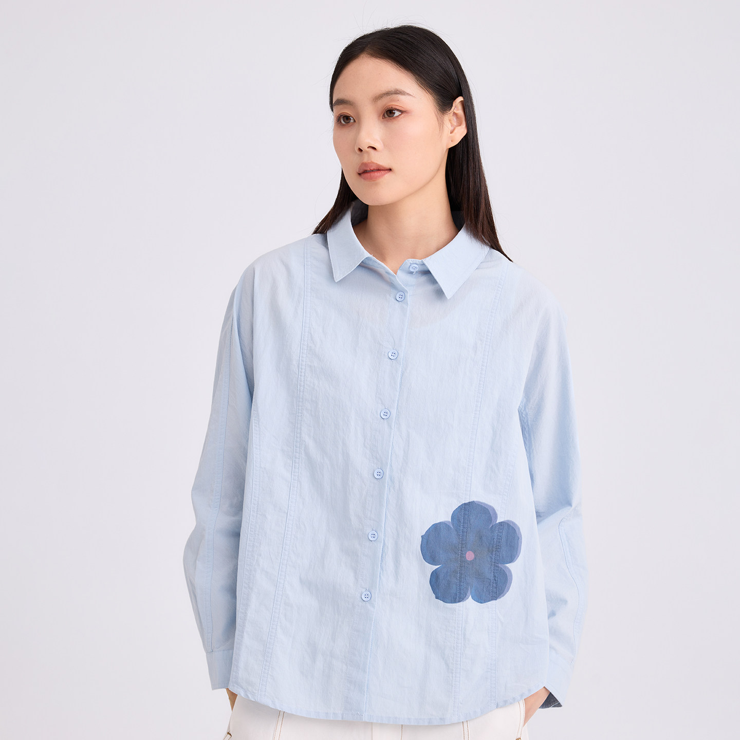 无色无味衬衫女2026春季新品棉质设计感亚麻花宽松长袖直身衬衣