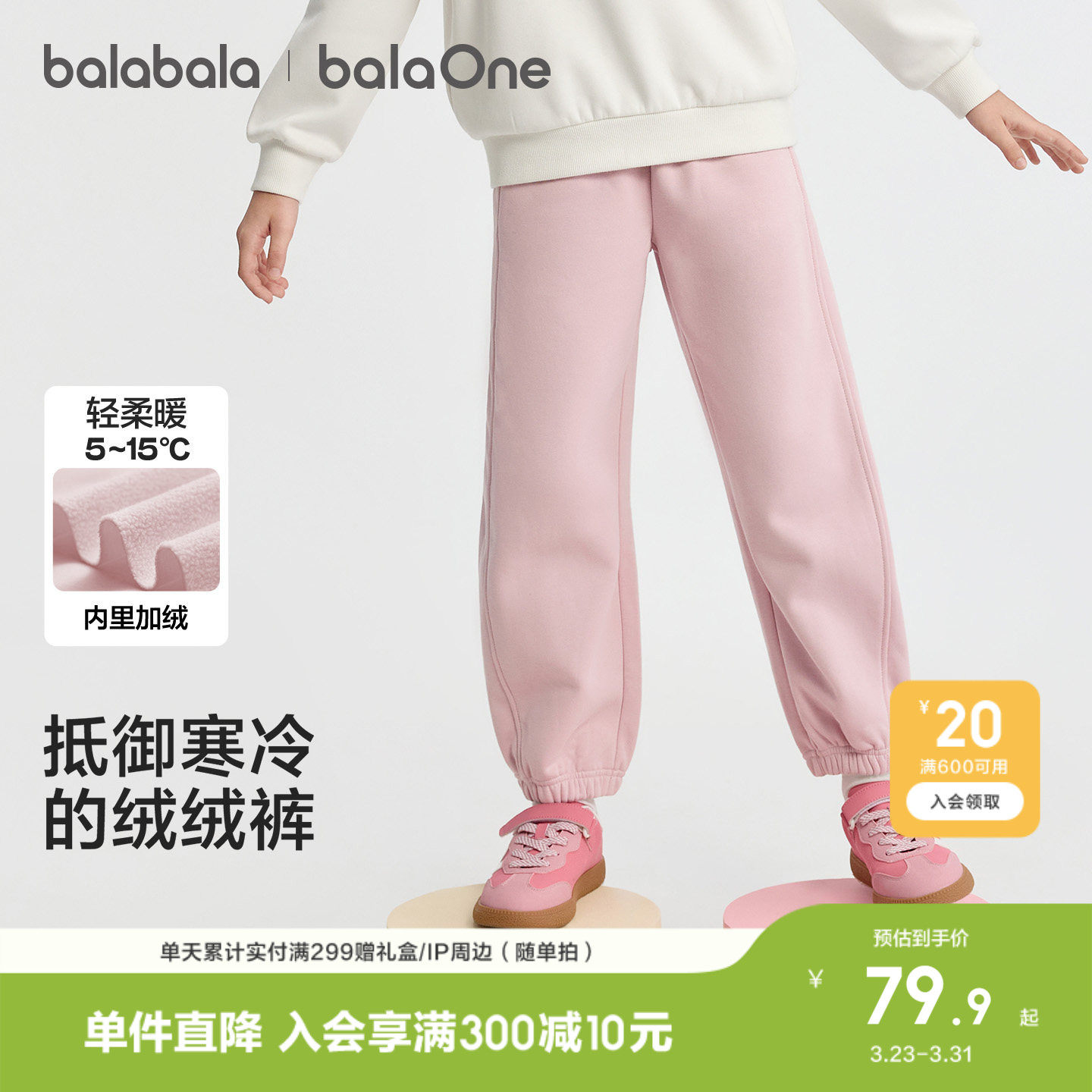 巴拉巴拉童装儿童加绒裤子女童运动长裤2026冬装休闲一体绒保暖潮