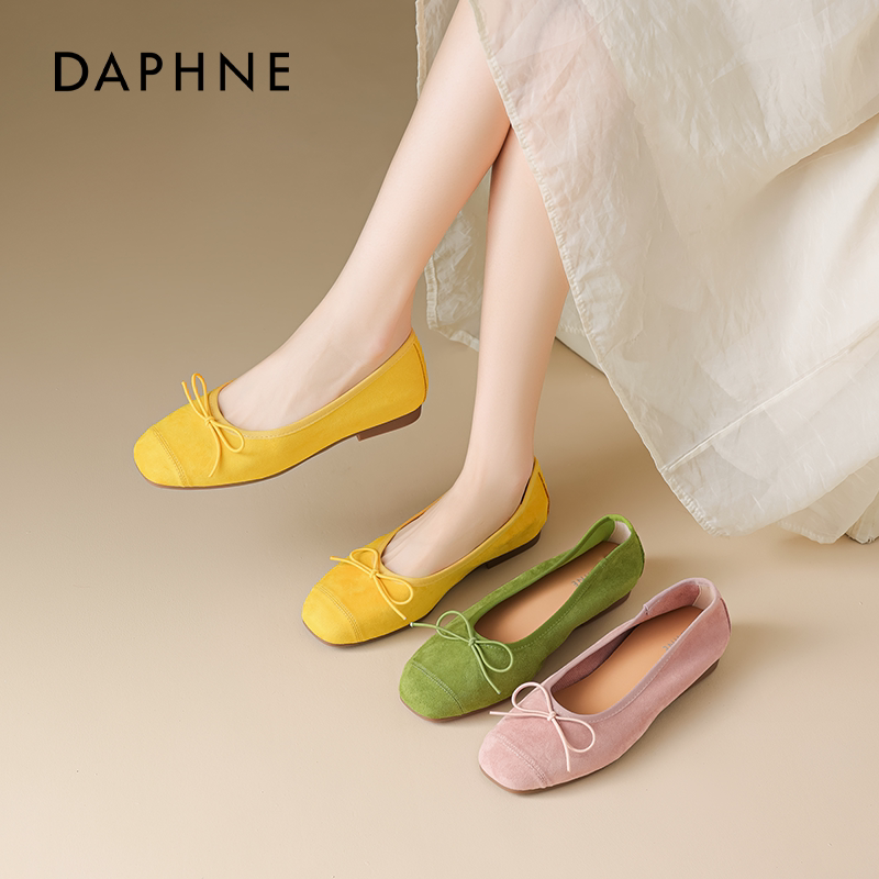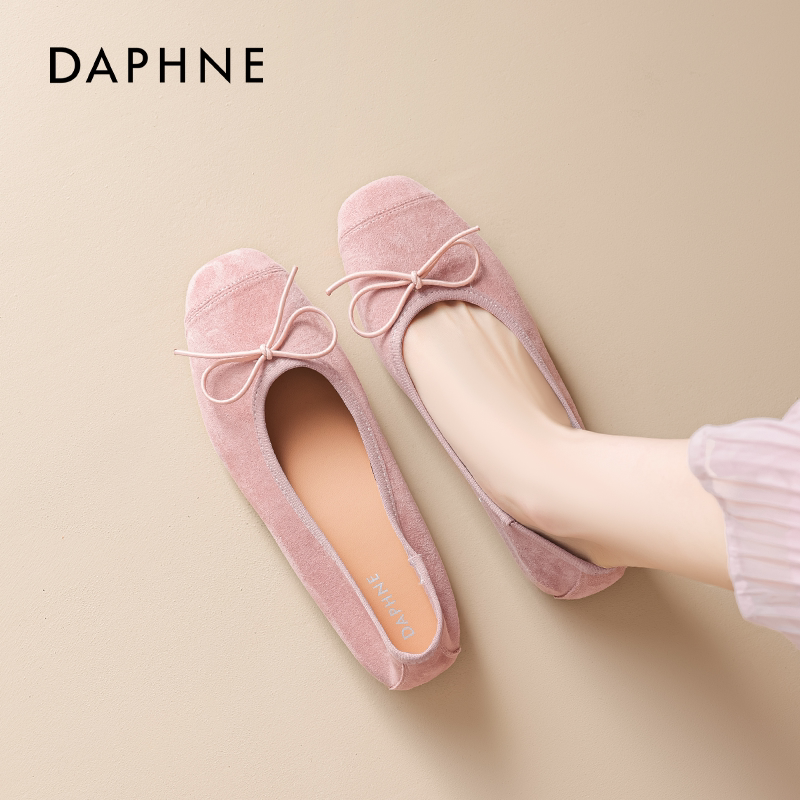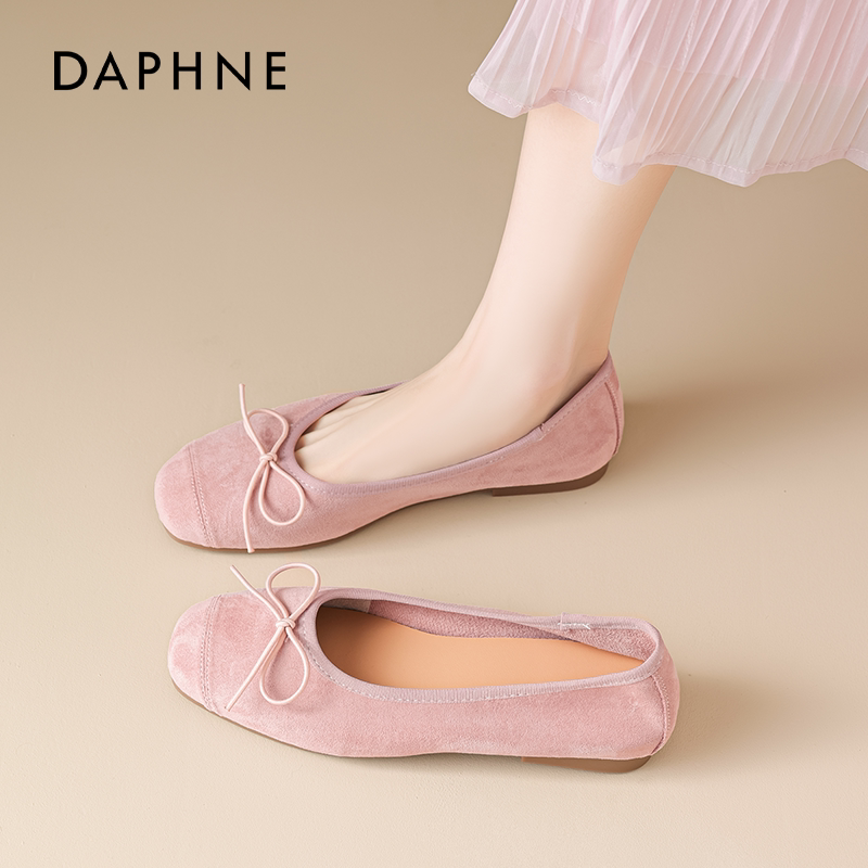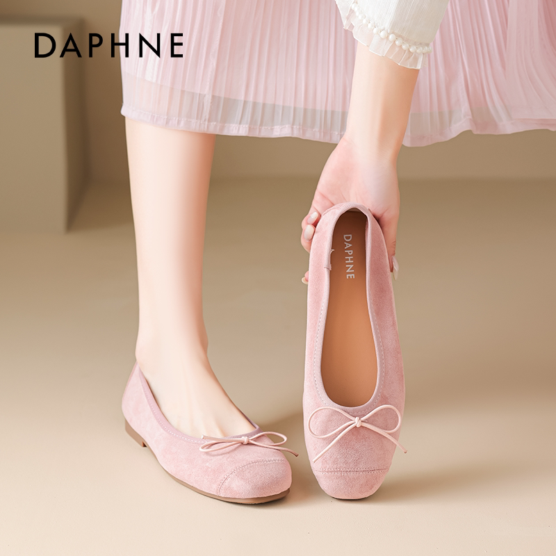 达芙妮粉色单鞋女平底2026新款秋季软底不累脚开车孕妇豆豆蛋卷鞋