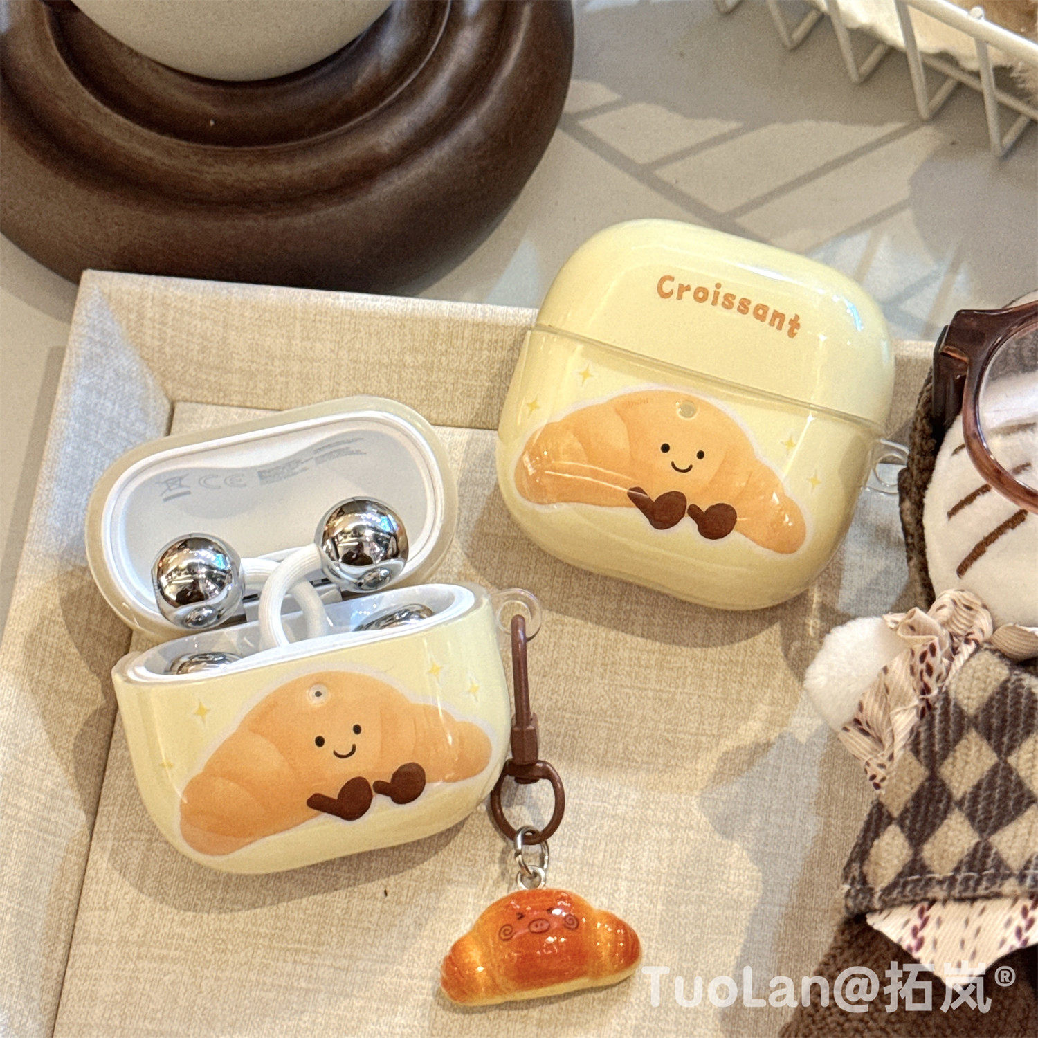 拓岚 适用华为freeclip2耳机保护壳韩系ins奶黄趣味可爱吐司牛角包Freebudspro3/4挂件吊坠防摔套SE2/3网红女