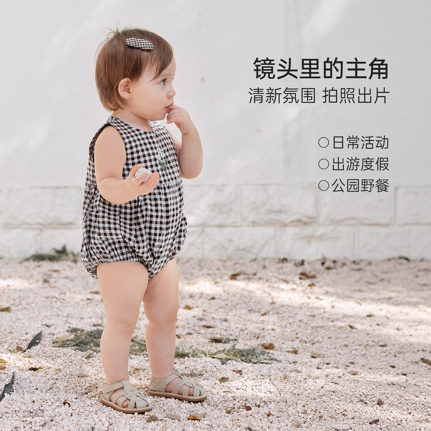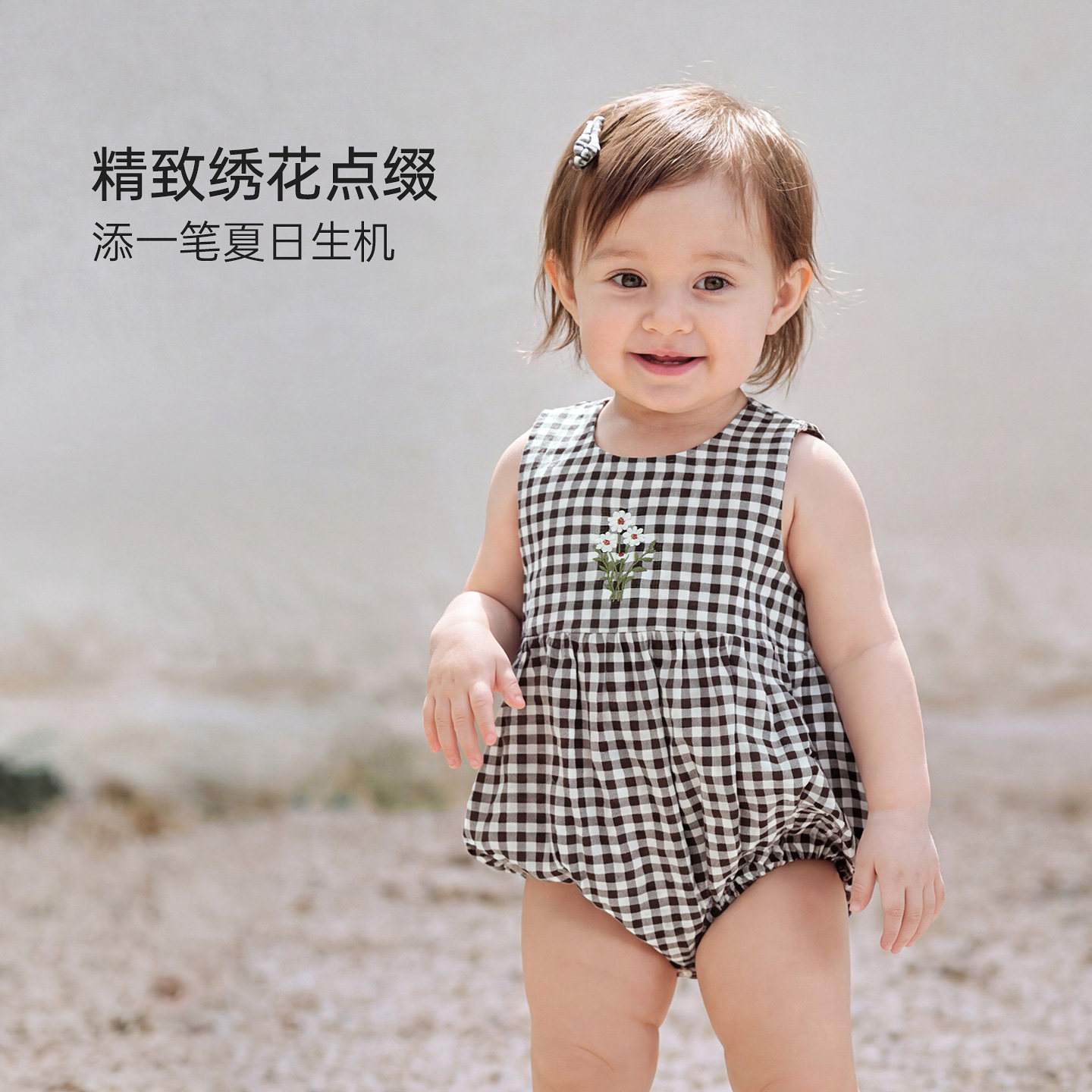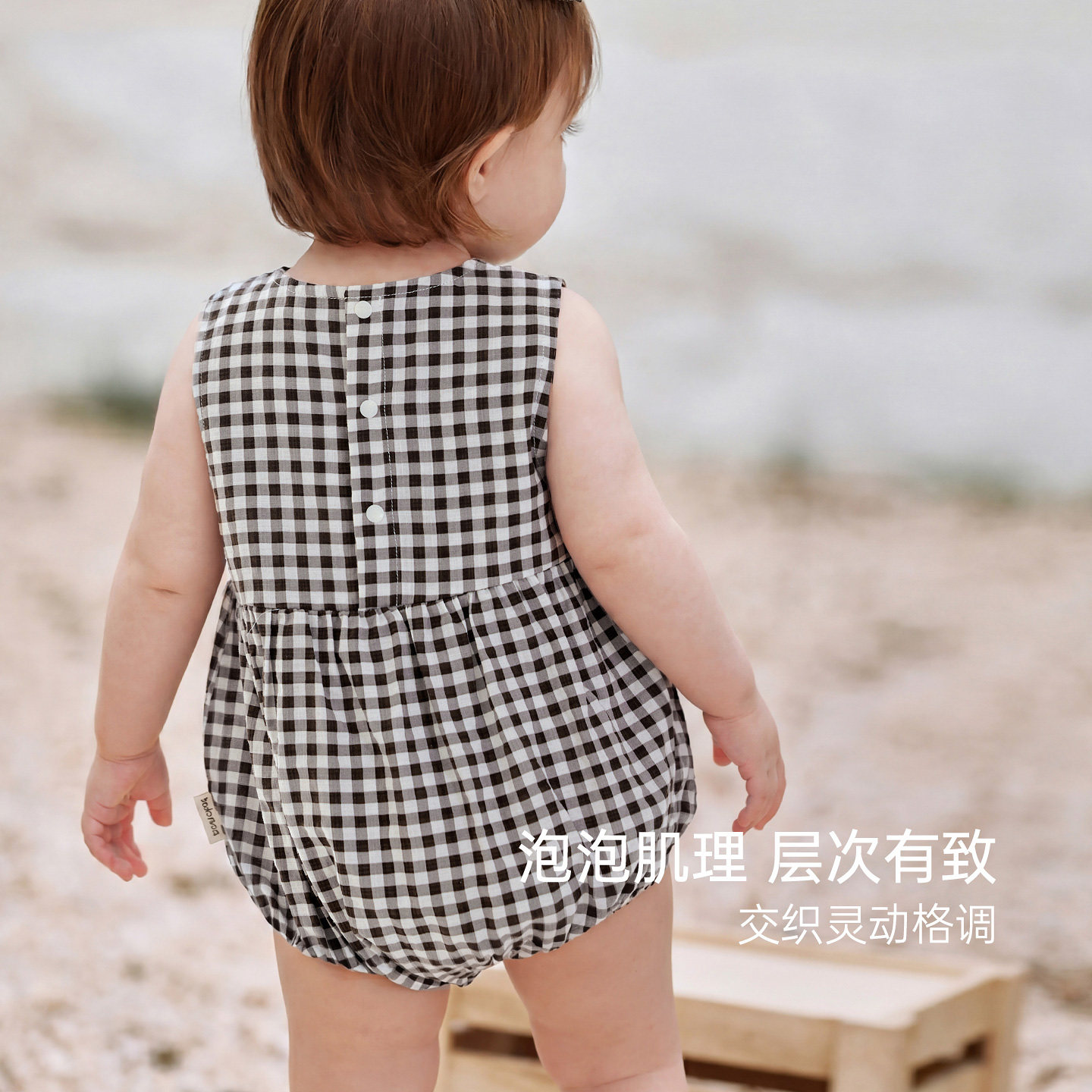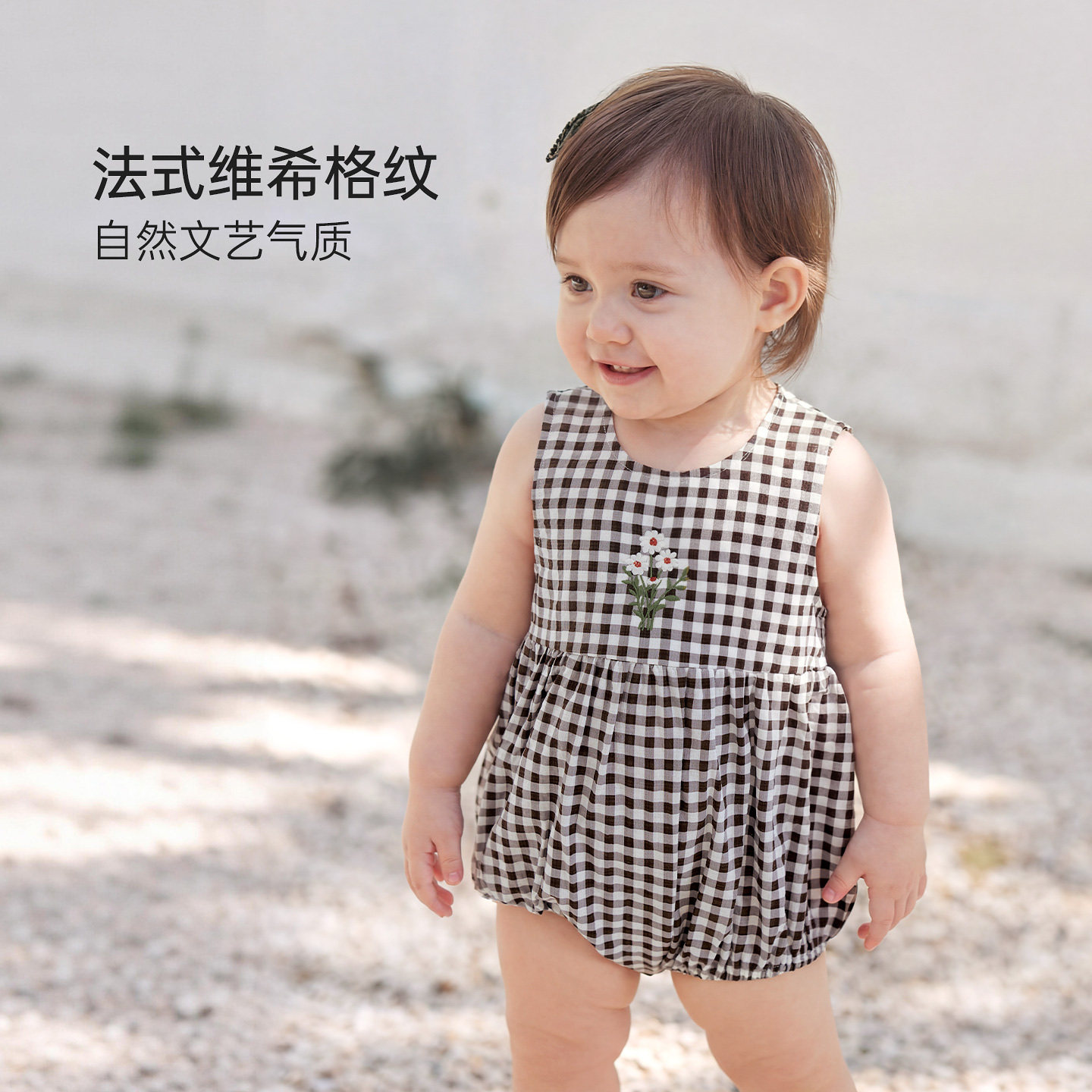 babylove女宝宝包屁衣夏季三角哈衣爬服文艺格纹婴儿夏装维希风尚