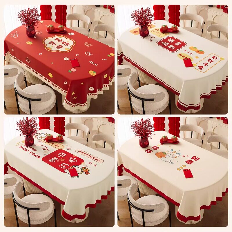 新年桌布防水防油免洗马年红色喜庆餐桌布氛围感防烫台布茶几盖布