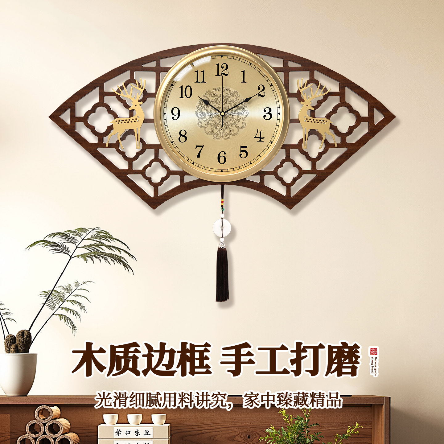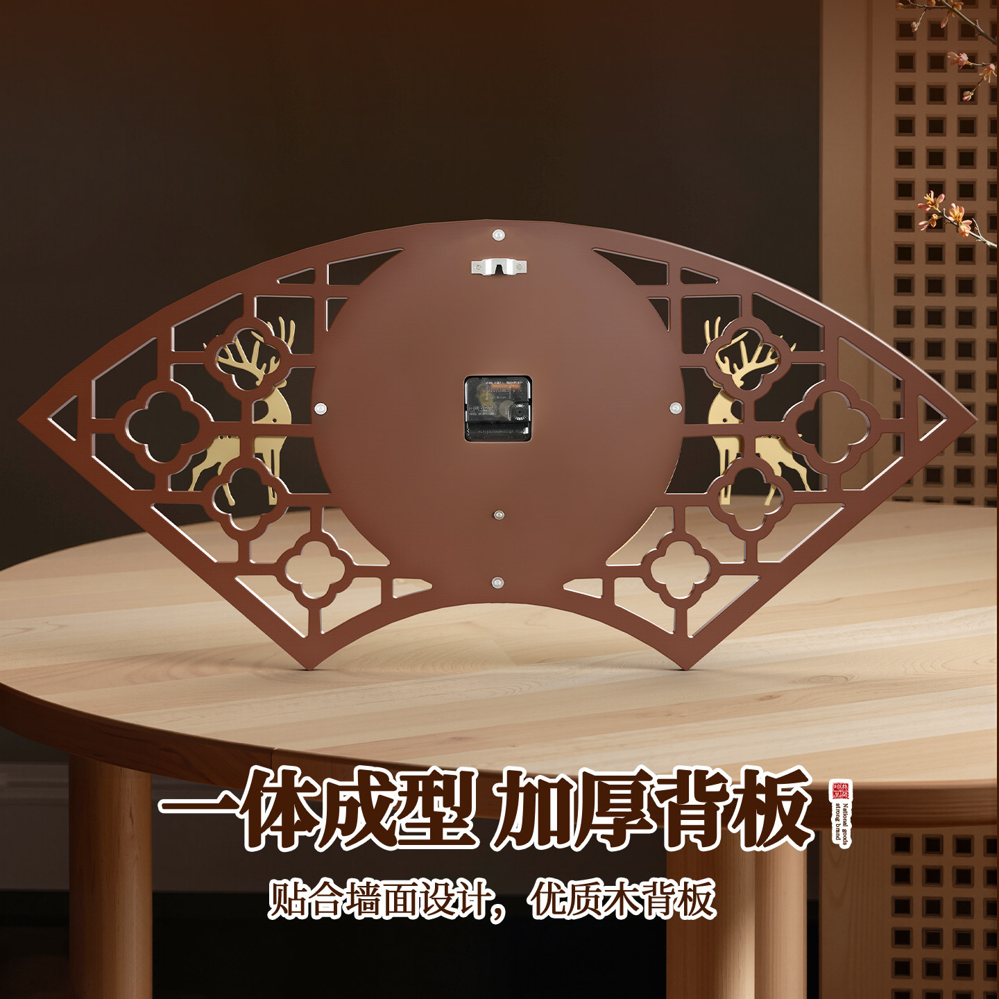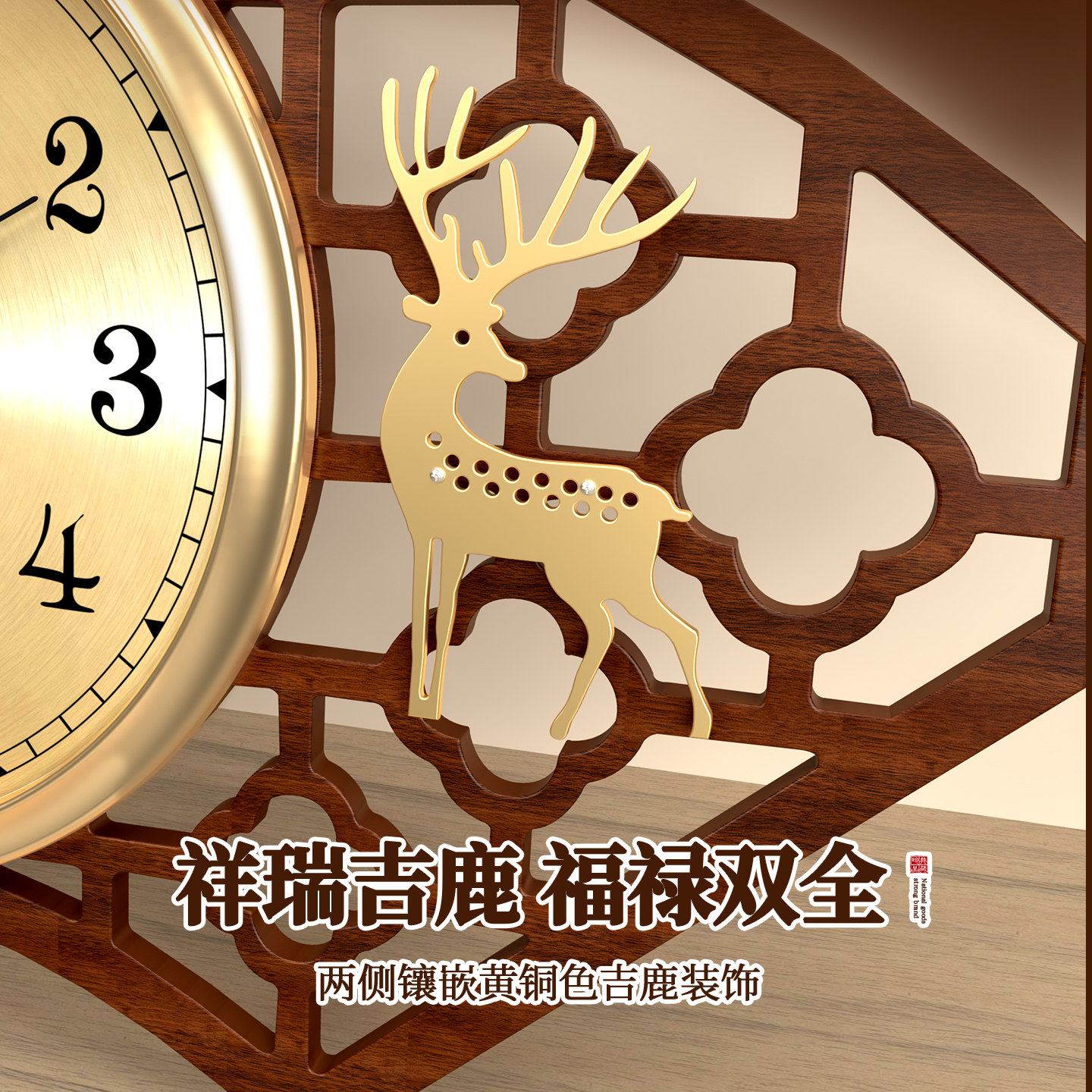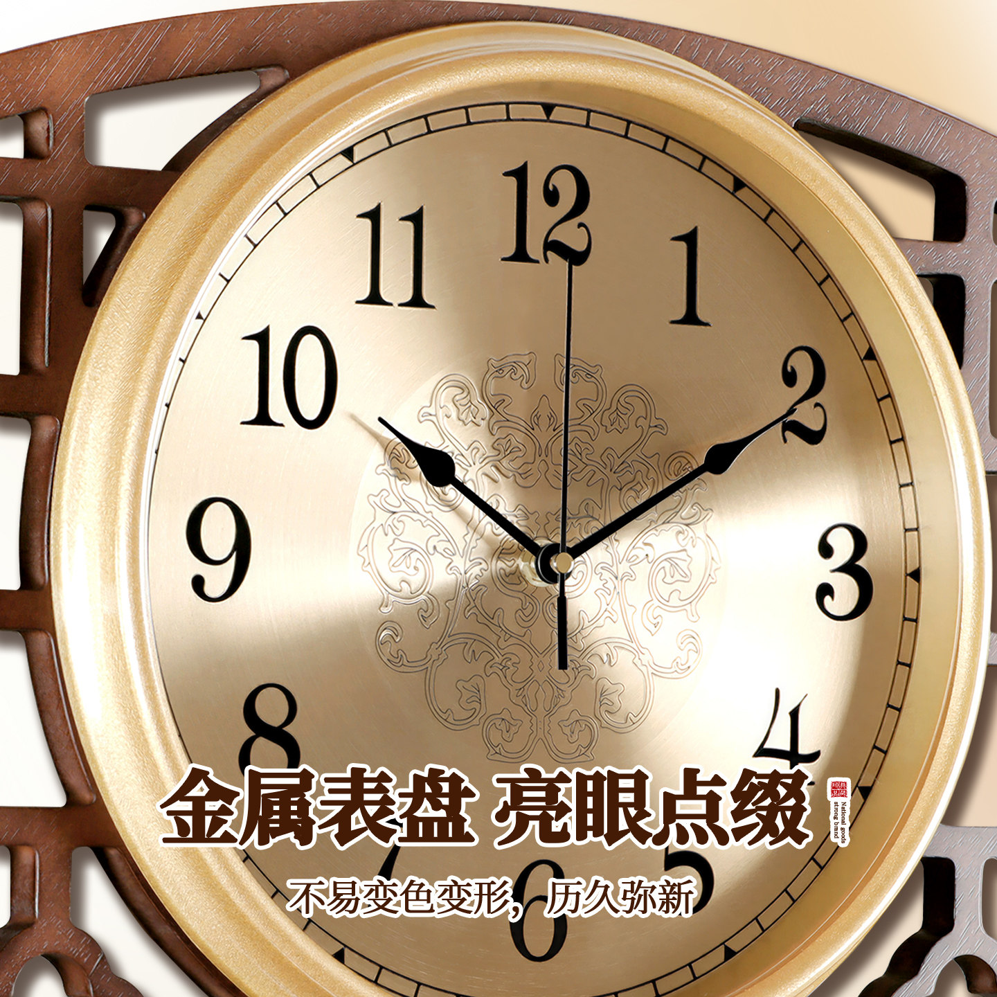 新中式设计,木质边框,金属表盘,静音准时