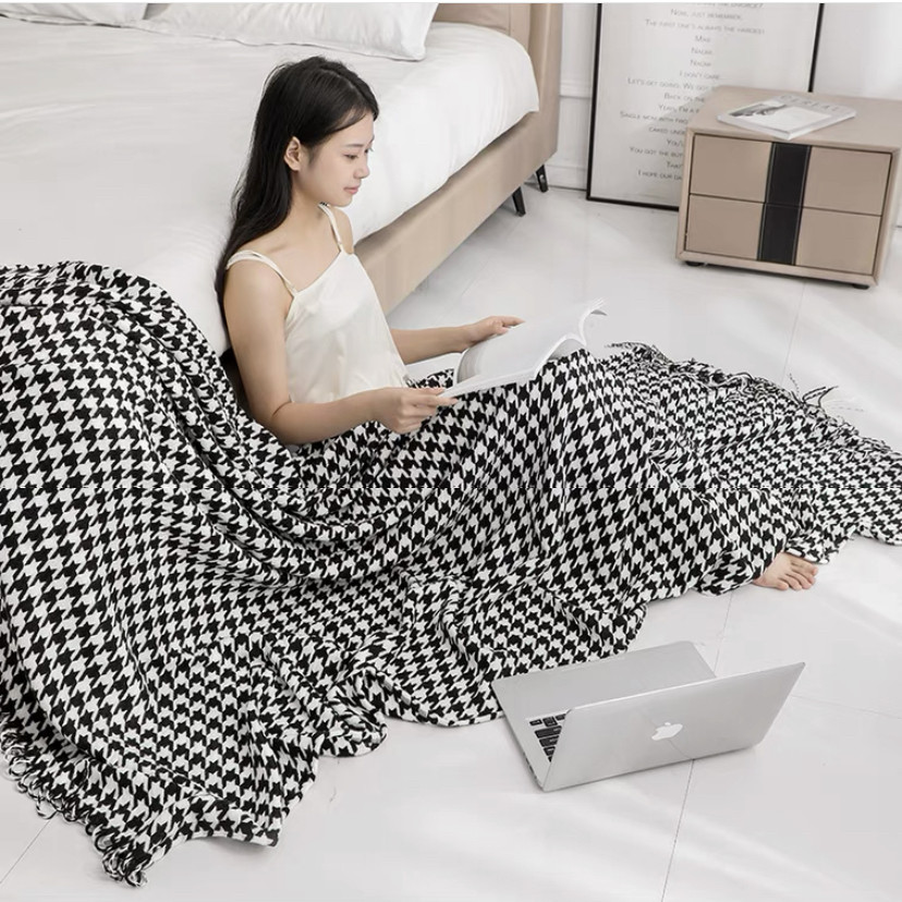 北欧千鸟格沙发毯盖毯针织毛毯空调午睡毯床尾民宿装饰搭毯床尾巾