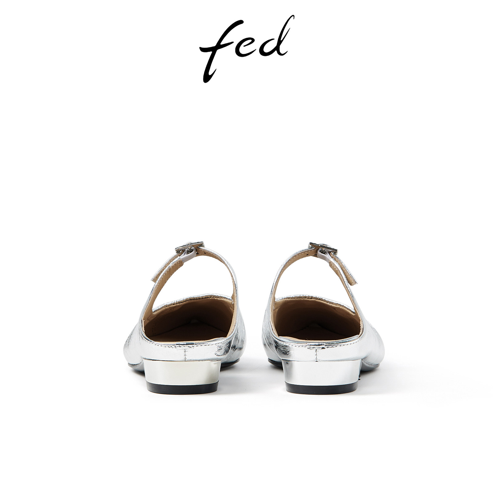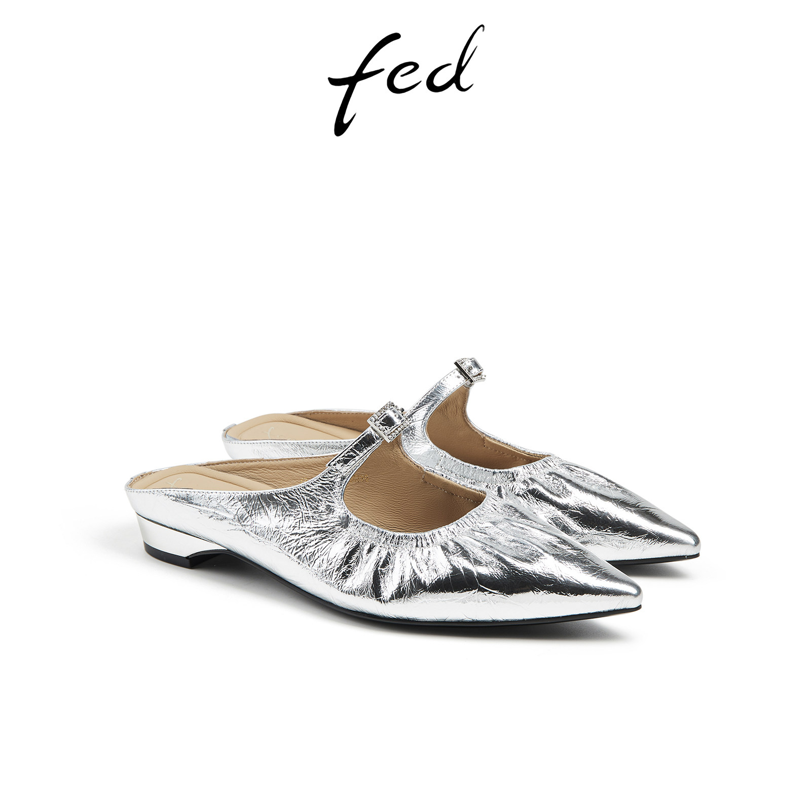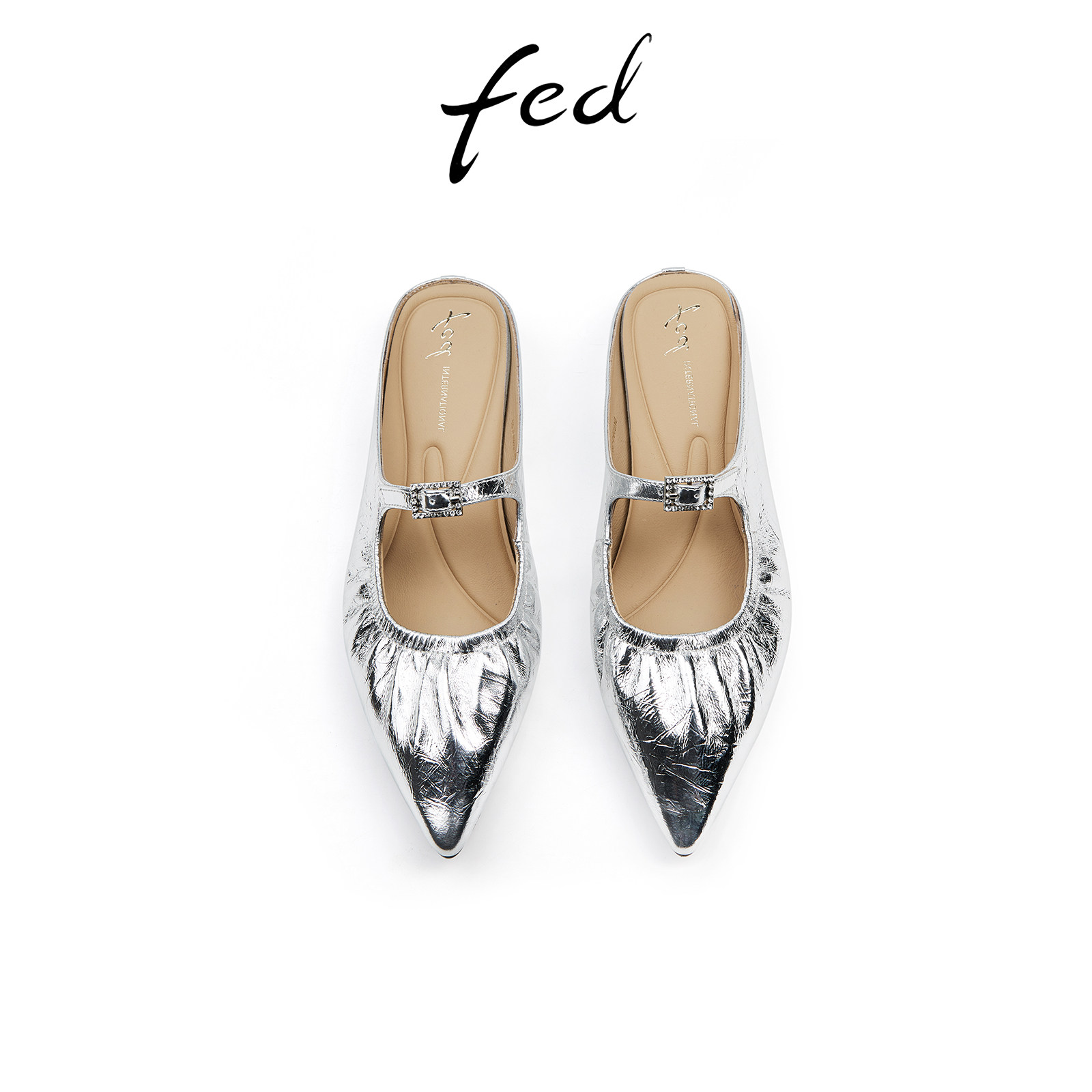 fed银色穆勒鞋夏季新款女鞋褶皱后空单鞋尖头凉拖鞋D0507-ZCA591