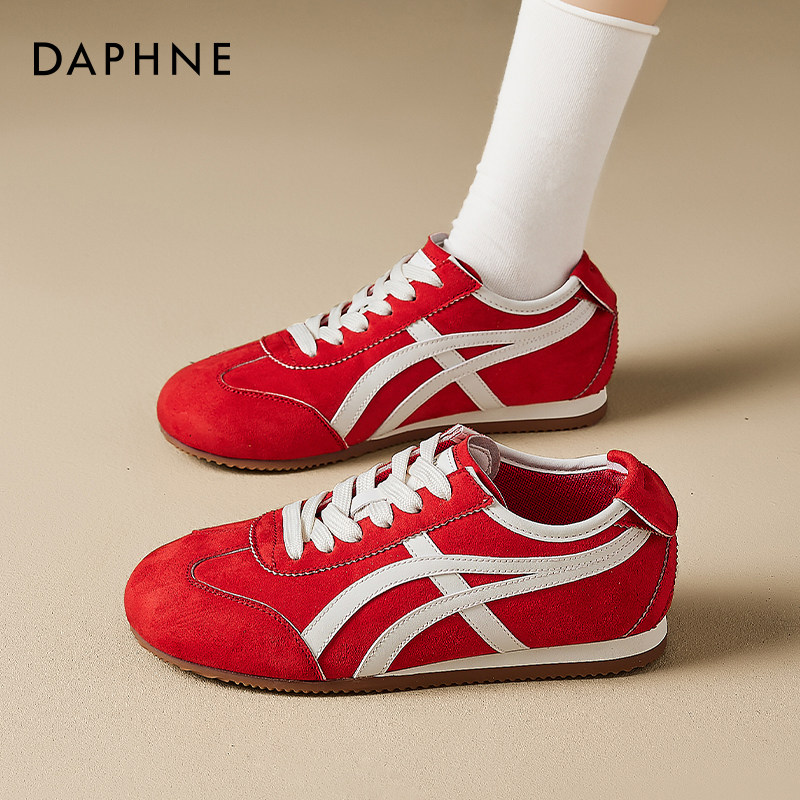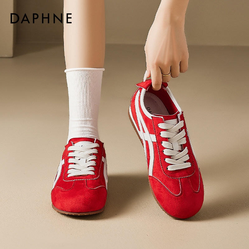 达芙妮红色阿软底甘鞋女2026新款流行圆头芭蕾德训鞋巨好看运动鞋